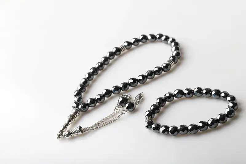 • Tesbih ve bileklik seti, hematit taşının doğal şifalı özelliklerini taşır.