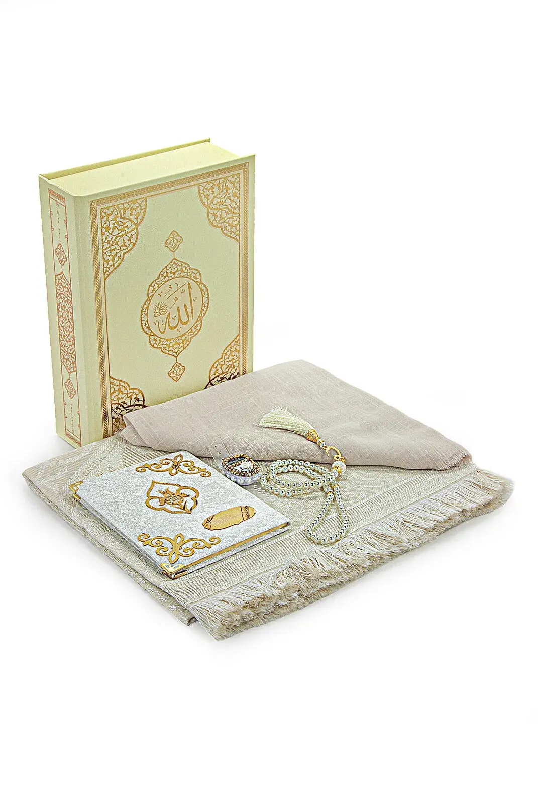 Özel Kutulu Gelin Bohçasına Uygun Çeyizlik Seccade Seti Krem