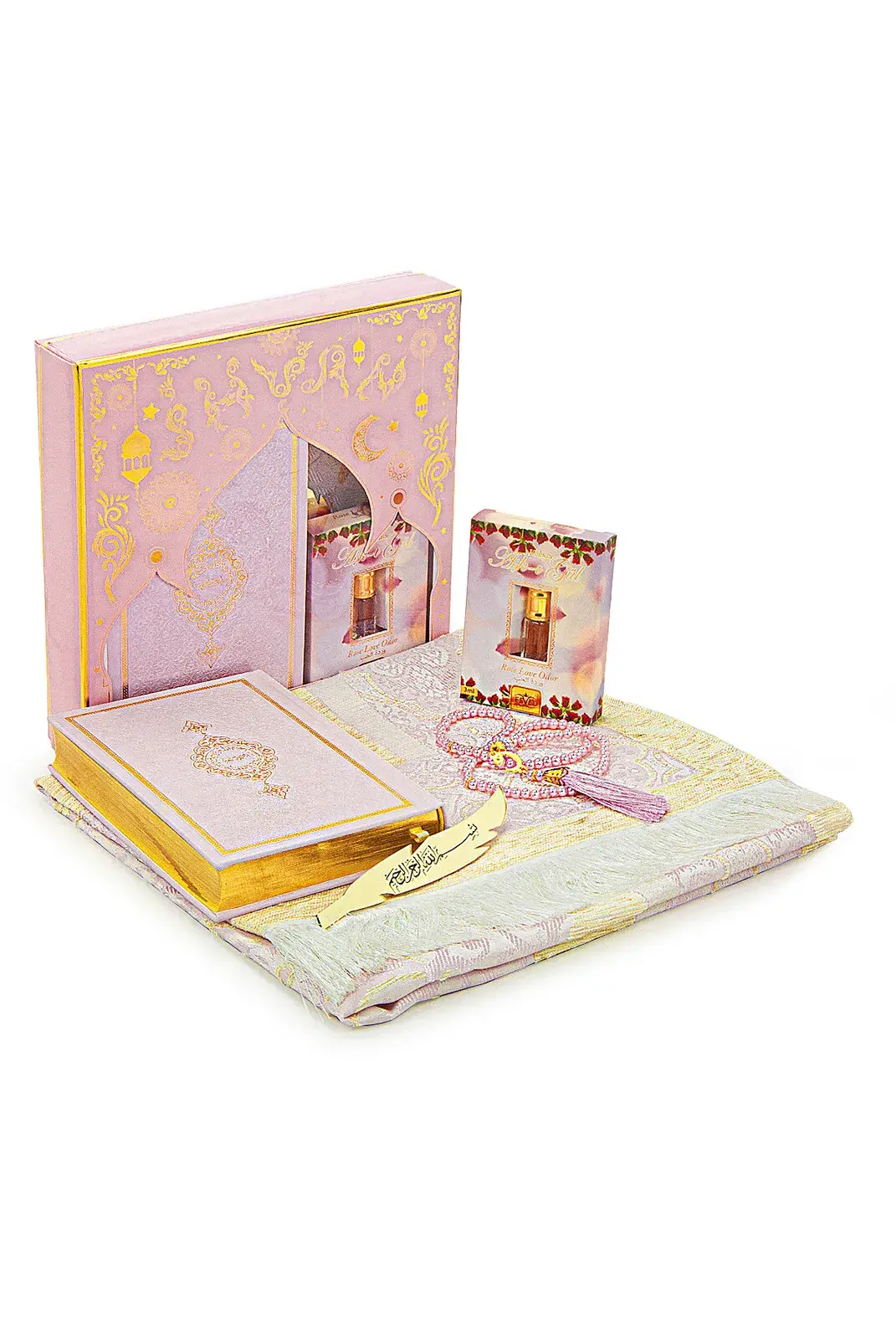 Özel Kutulu Gelin Bohçasına Uygun Hediyelik Çeyizlik Seccade Seti Pembe