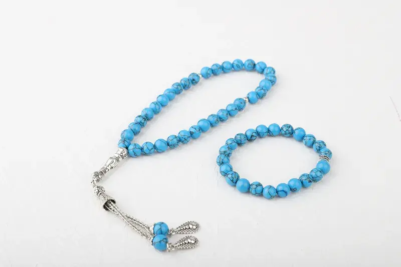 • Tesbih ve bileklik seti, firuze taşının doğal şifalı özelliklerini taşır.