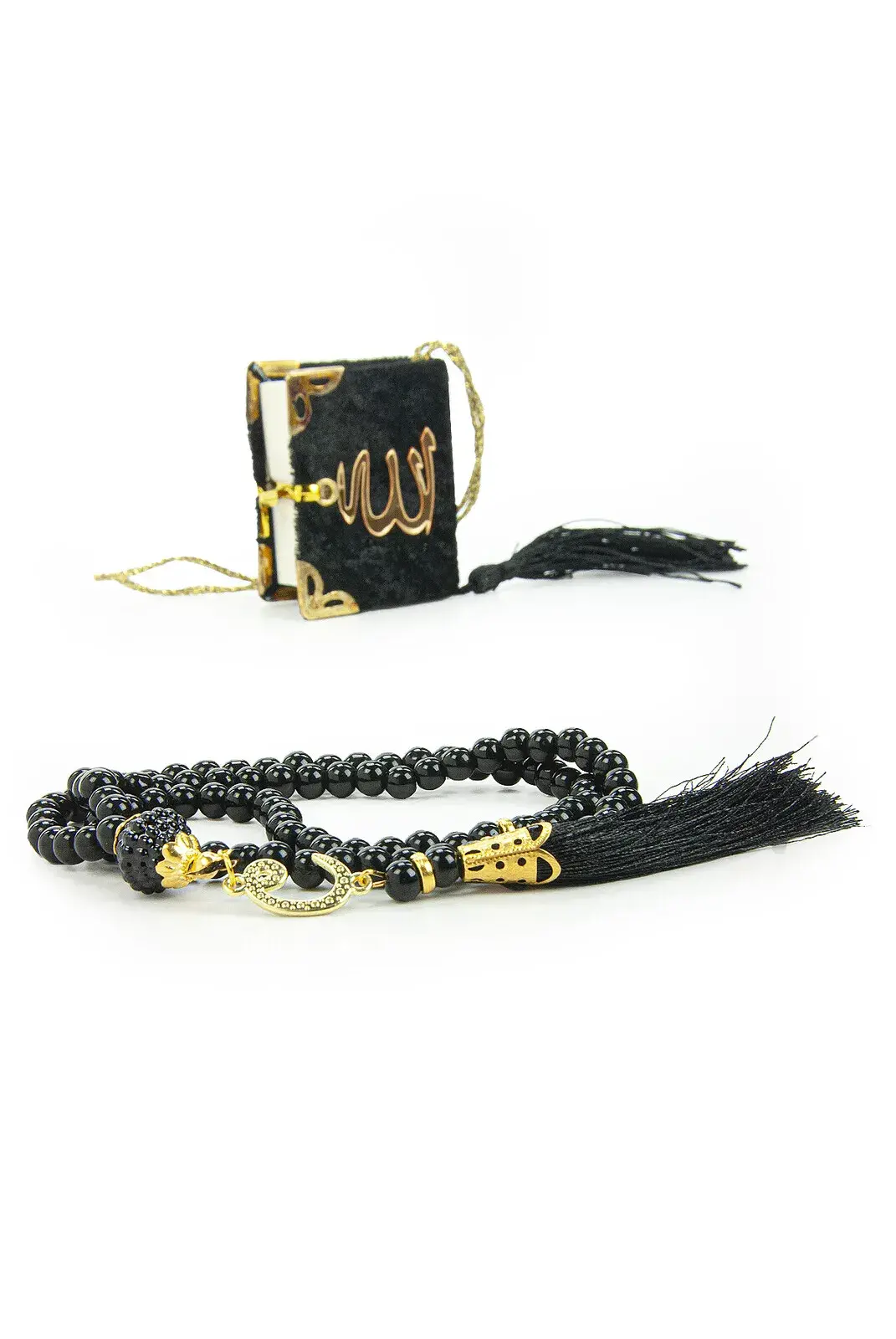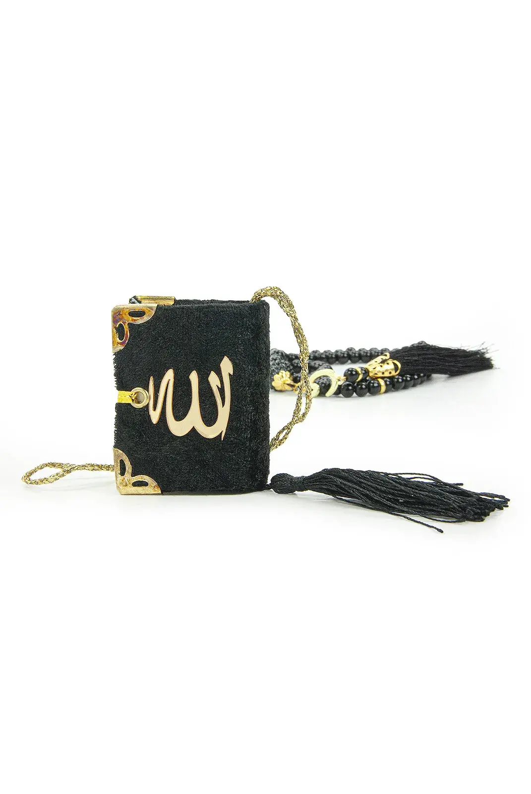 Özel Tasarım Kutulu İnci Tesbihli Mini Kuranı Kerim Mevlüt Hediyelik Seti Siyah