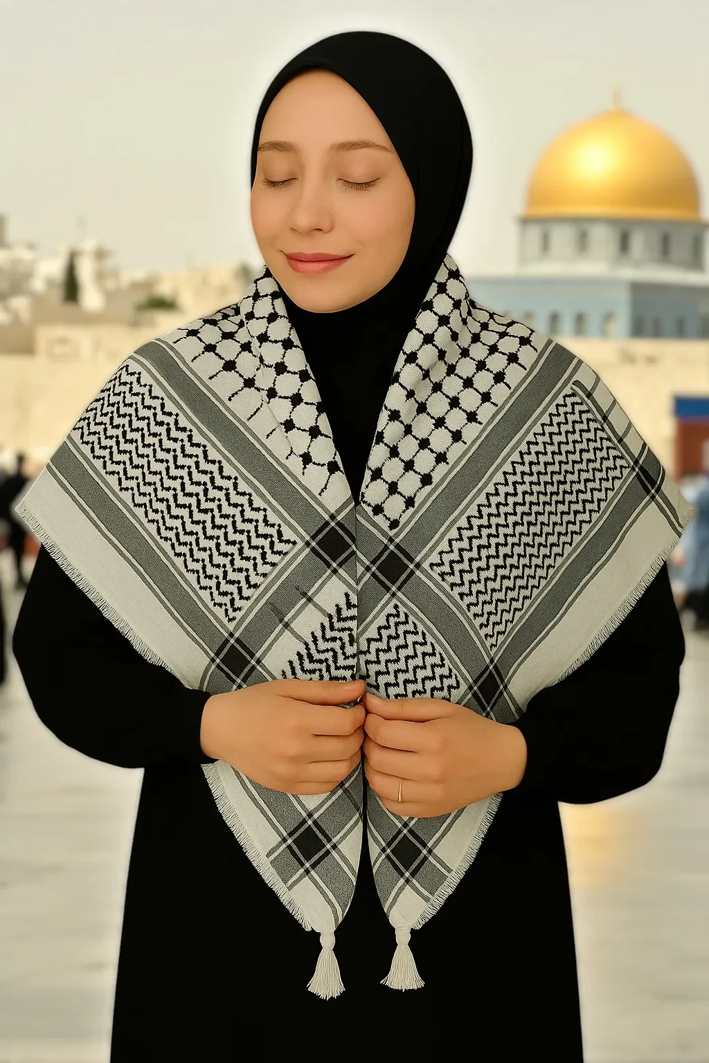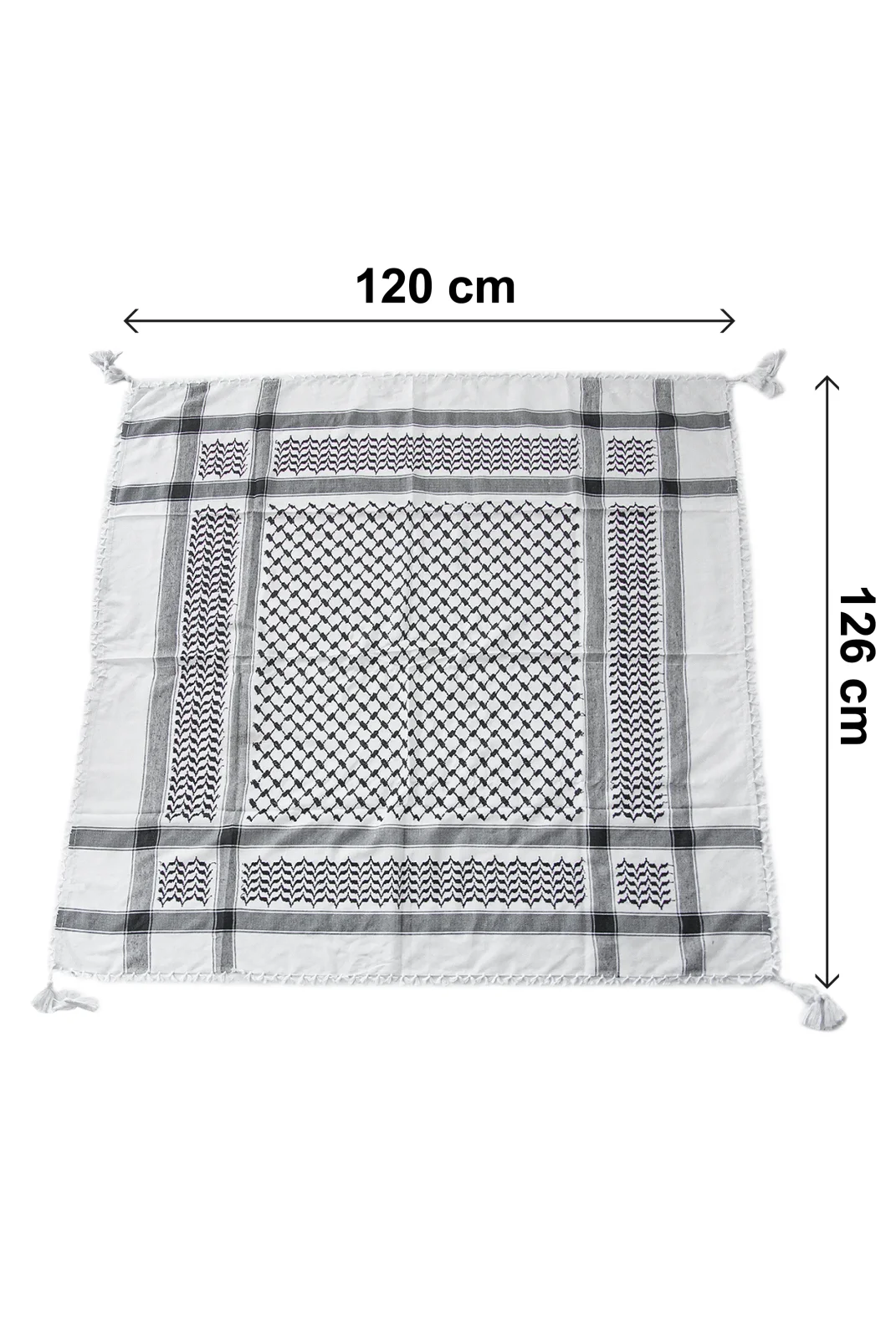 Filistin kültürünün simgesi haline gelmiş geleneksel kare desenli kefiye, hem manevi anlamı hem de sade şıklığıyla öne çıkar. %100 pamuklu dokusu sayesinde terletmez, nefes alabilir ve uzun süreli kullanımda konfor sağlar. Erkek ve kadınlar için uygun olan bu model, Filistin desenli klasik siyah beyaz tasarımıyla stilinizi tamamlar.