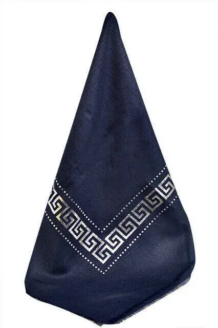 Pano Desenli Varaklı Lacivert Örtü yemni yazma