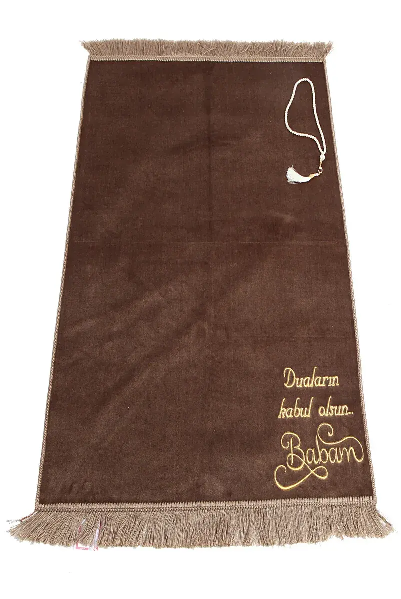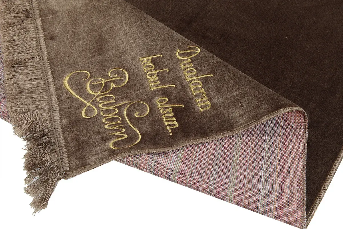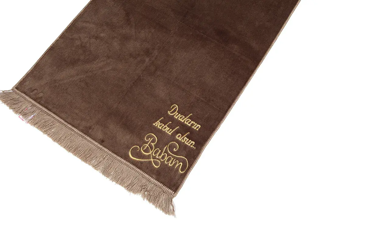 Personalized Name Embroidered Luxury Plain Unpatterned Velvet Velor Prayer Rug