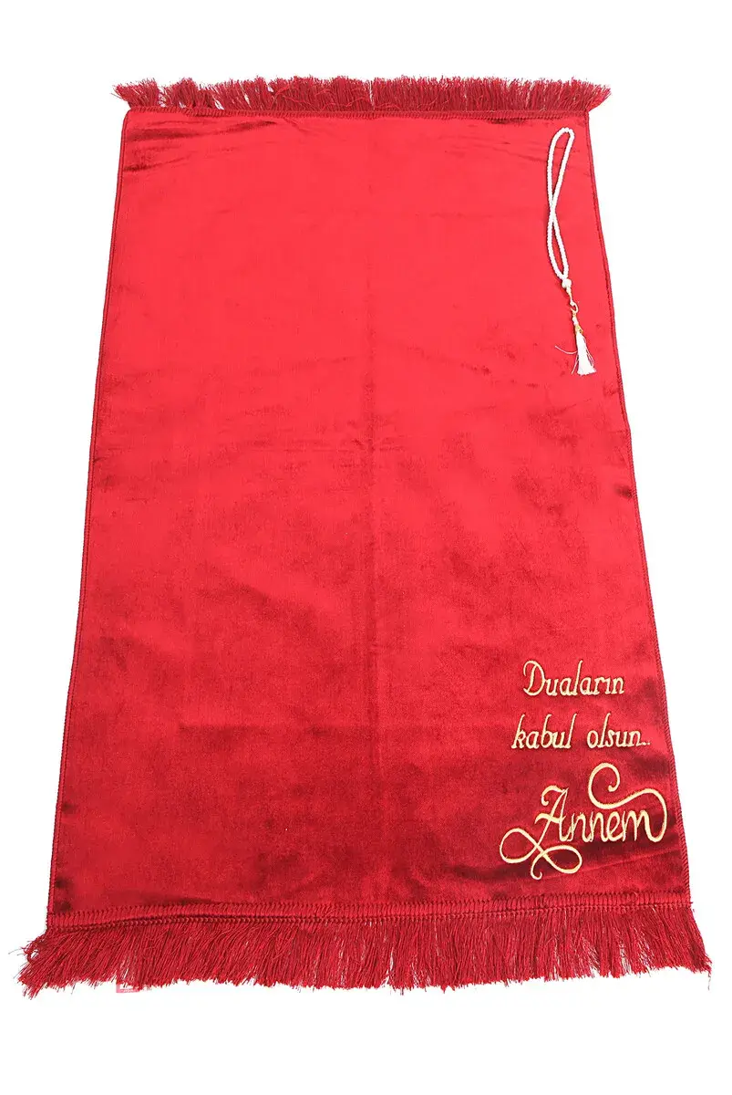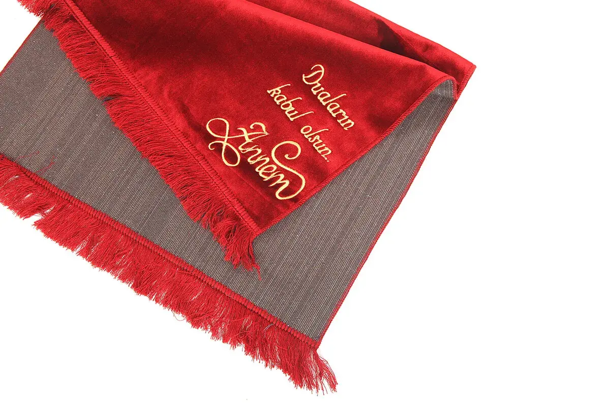 Personalized Name Embroidered Luxury Plain Unpatterned Velvet Velor Prayer Rug