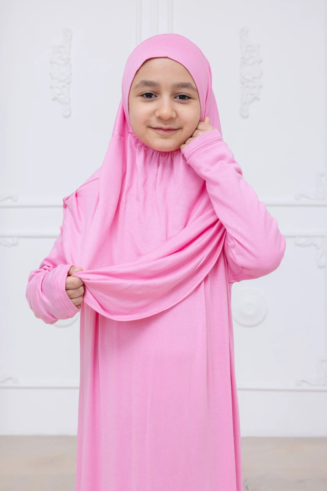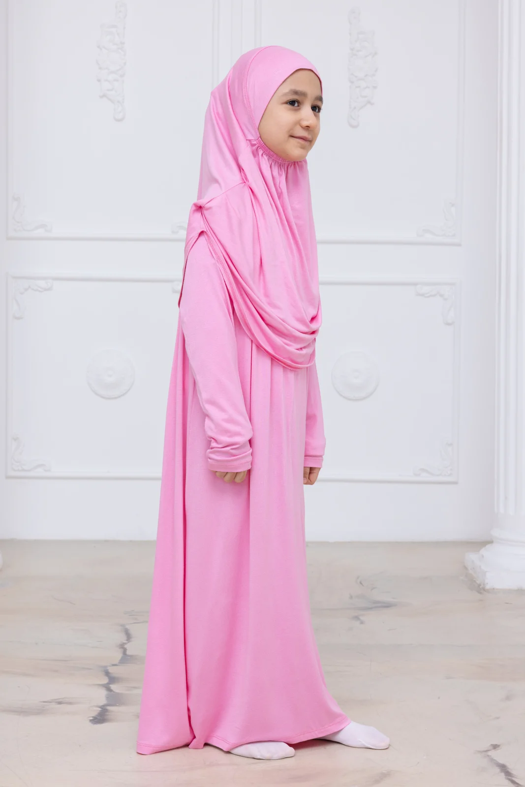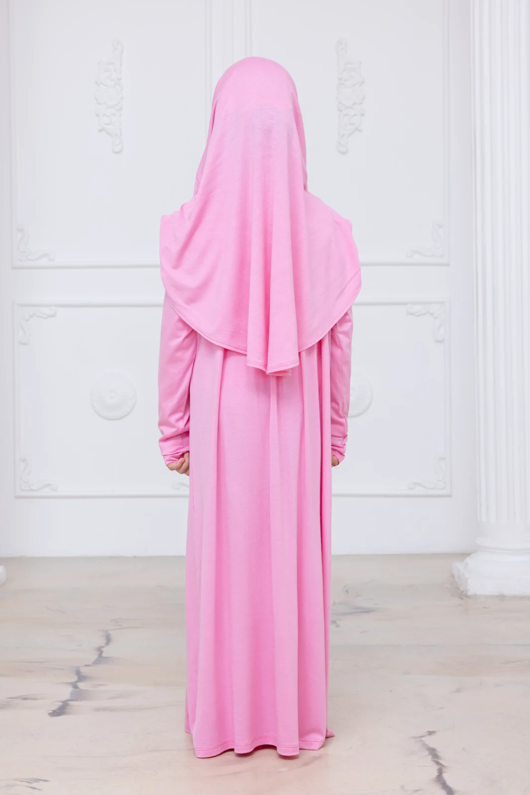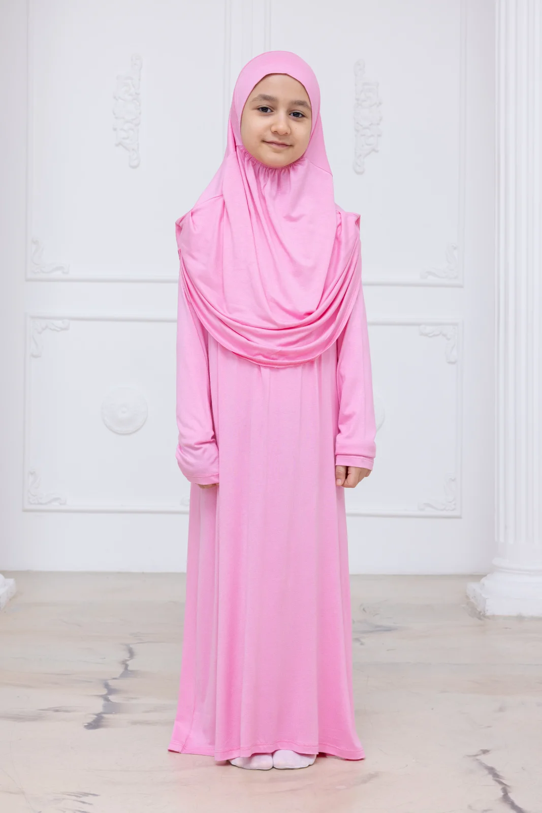 Çocukların namaz ibadetine olan ilgisini artırmak ve hazırlık aşamasını kolaylaştırmak için özel olarak tasarlanmıştır. Kendinden başörtülü tek parça yapısı, iğne veya bone gerektirmeden pratik bir kullanım sunar. Likralı ve bol kesim kumaşı sayesinde çocukların rüku ve secde anında rahat hareket etmesine olanak tanır.