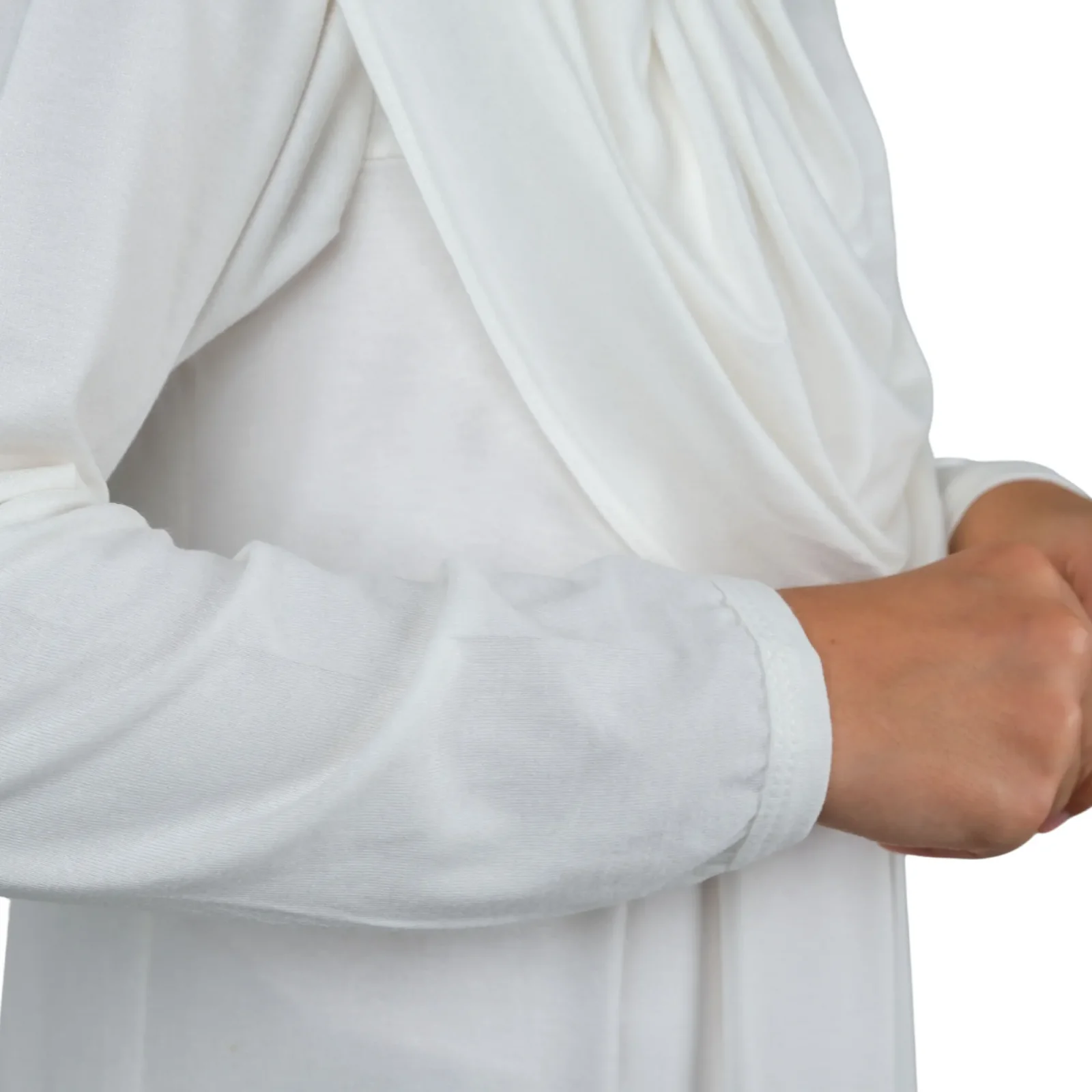 Pratik Başörtülü Tek Parça Çocuk Namaz Elbisesi 8-12 Yaş - Krem