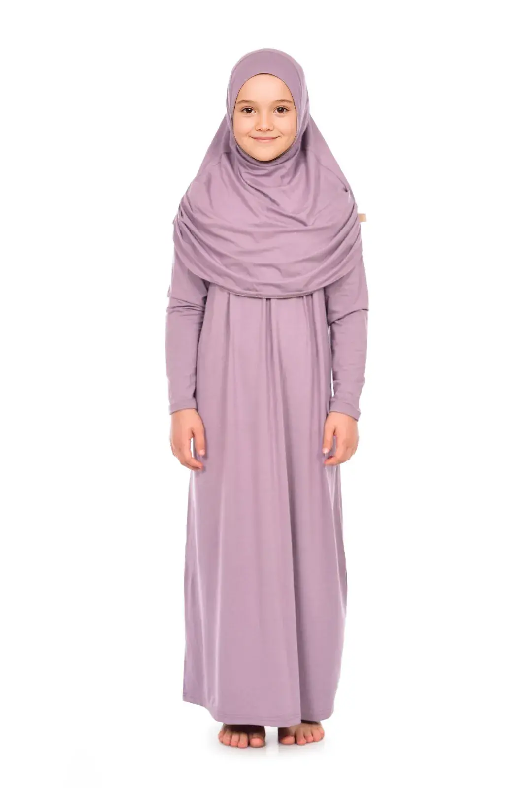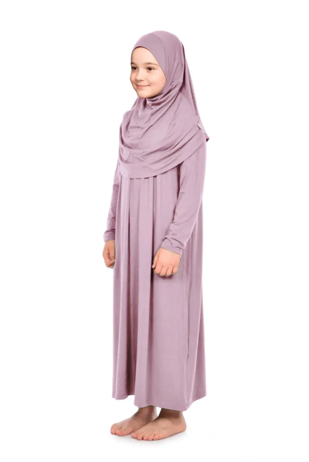 Pratik Başörtülü Tek Parça Kız Çocuk Namaz Elbisesi 9-11 Yaş Gül Kurusu