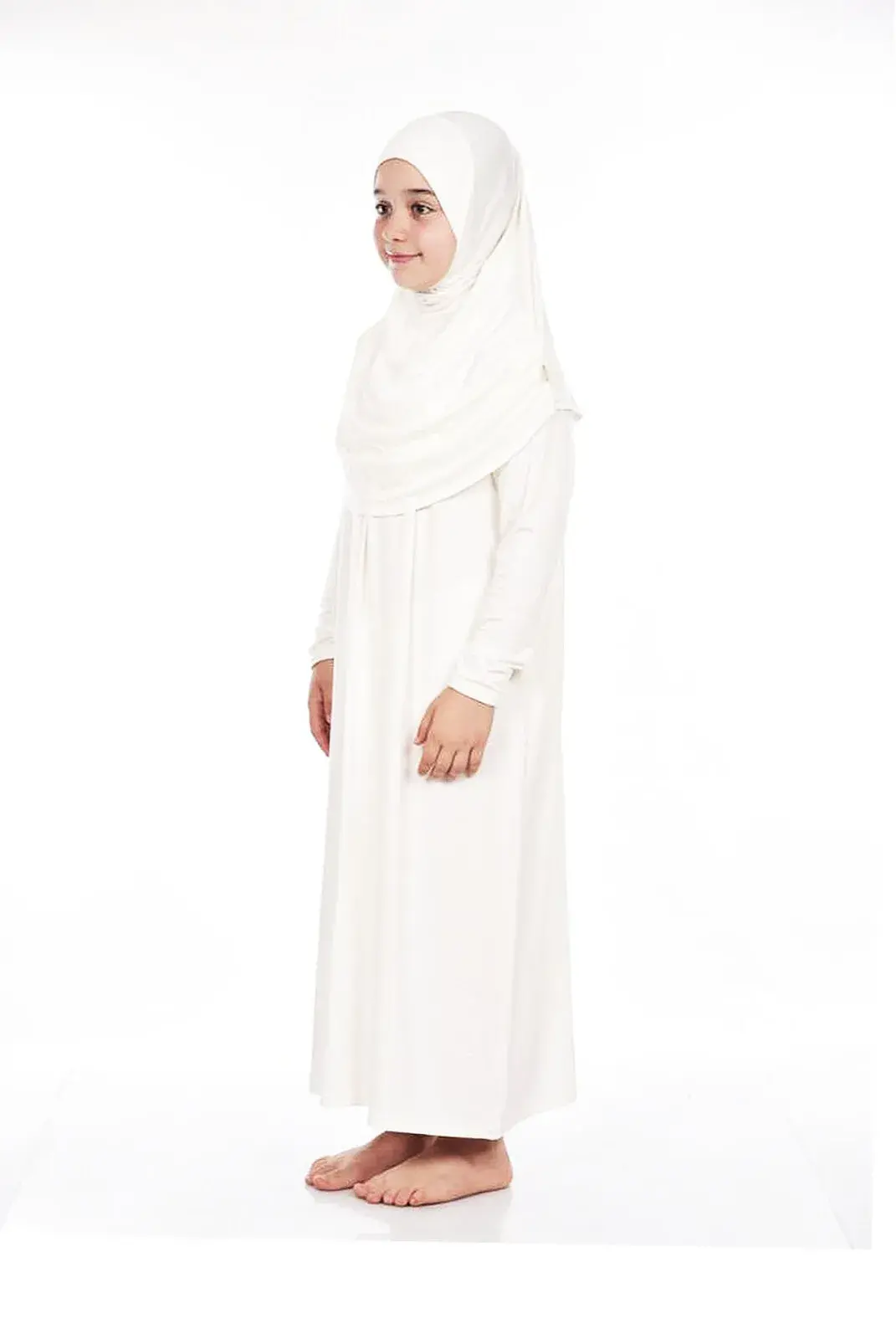 Pratik Çocuk Namaz Elbisesi 8-12 Yaş Beyaz