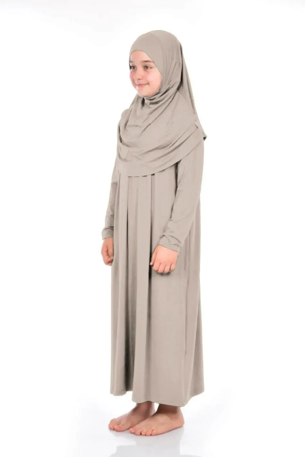 Pratik Çocuk Namaz Elbisesi 8-12 Yaş Ekru
