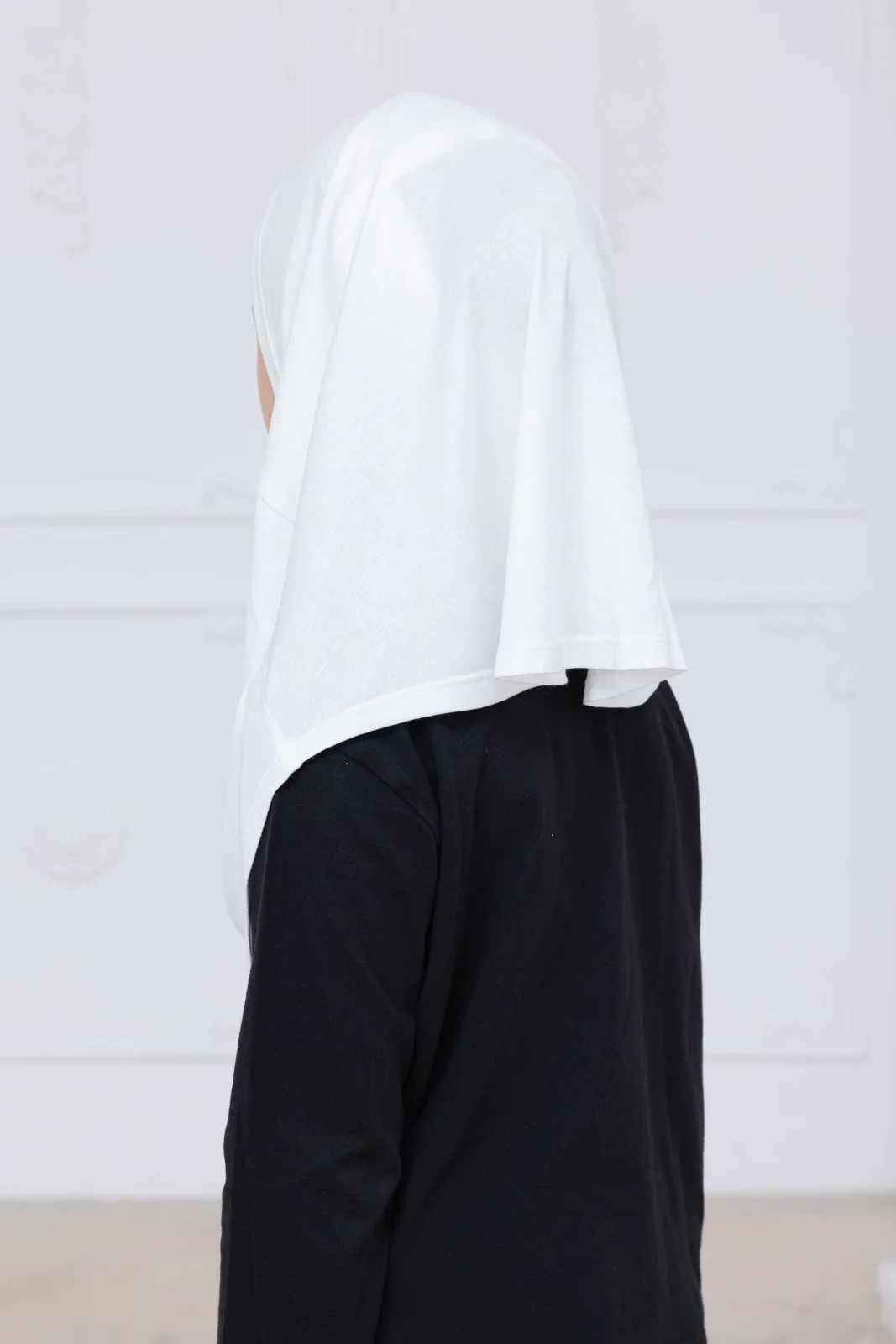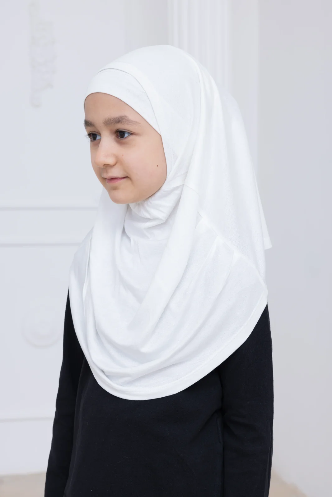 Pratik Hazır Geçmeli Çocuk Şal, Kendinden Boneli Lastikli Hijab Başörtü Beyaz
