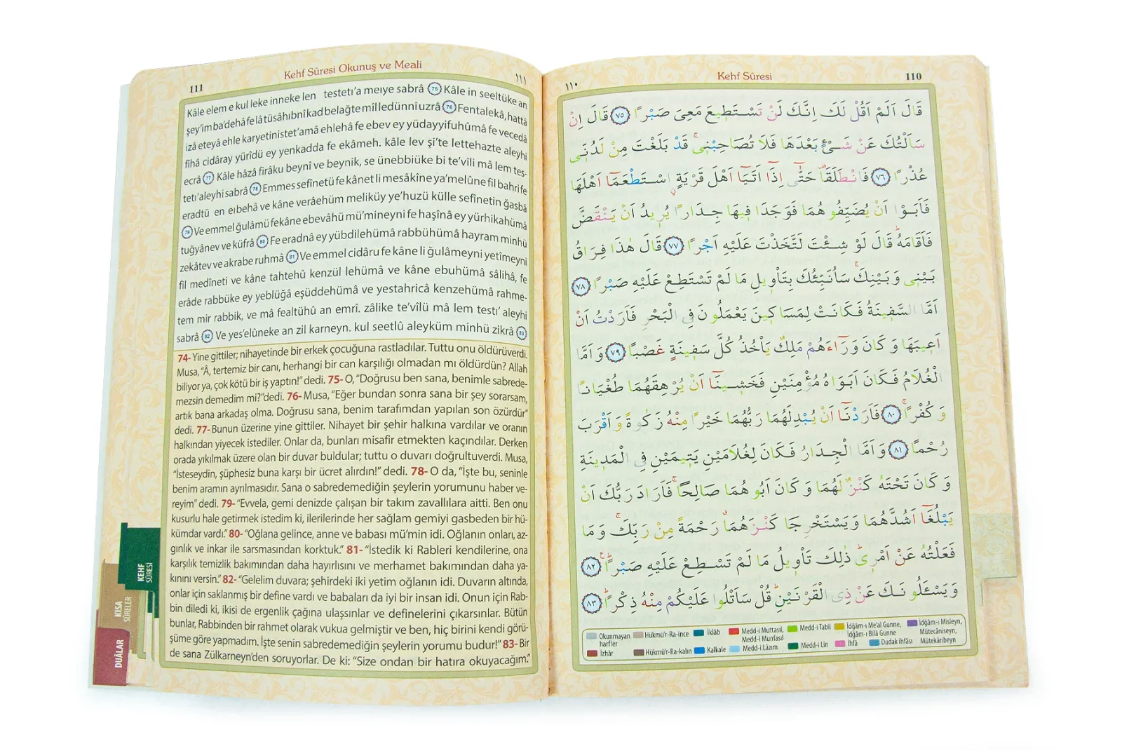 Renklendirilmiş tecvidli baskısı sayesinde doğru telaffuz ve kolay okuma imkânı sunan bu Yasin kitabı, manevi değeri yüksek bir hediye ve hayır ürünü olarak öne çıkar. Rahle boy ölçüsü sayesinde okunması kolaydır.