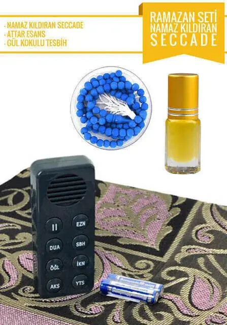 Namaz öğreten harika sesli saccade ile İslamın beş şartından biri olan namaz ibadetini öğrenmek şimdi daha kolay olacak. Seccade üzerinde yer alan namaz öğrenmeye ve namaz kılmaya teşvik edici elektronik cihaz bulunmaktadır.