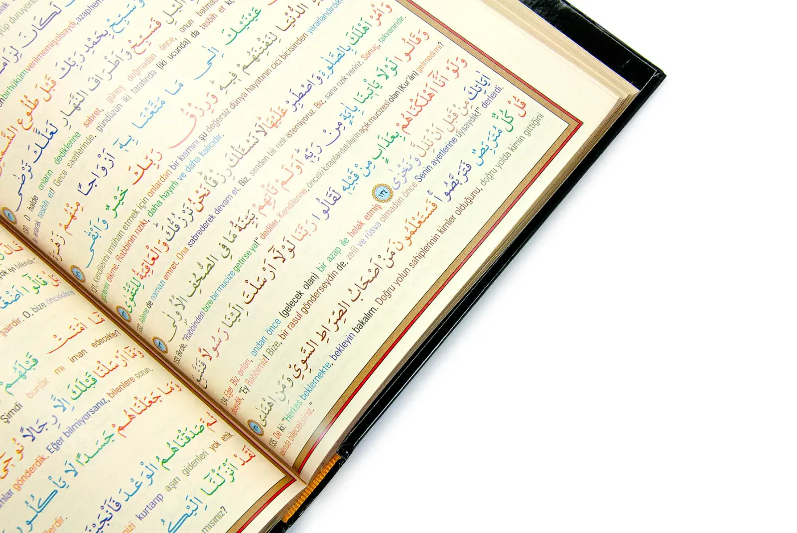 Bu Kuran-ı Kerim, satır altı kelime meali özelliğiyle hem Arapça metni hem de Türkçe anlamını aynı sayfada sunar. Her bir kelimenin altında Türkçe karşılığı yer almakta, böylece Kuran'ı daha iyi anlamak isteyenler için büyük bir kolaylık sağlar. Renkli basımı sayesinde Arapça metin ile Türkçe meal birbirinden kolayca ayırt edilebilir.