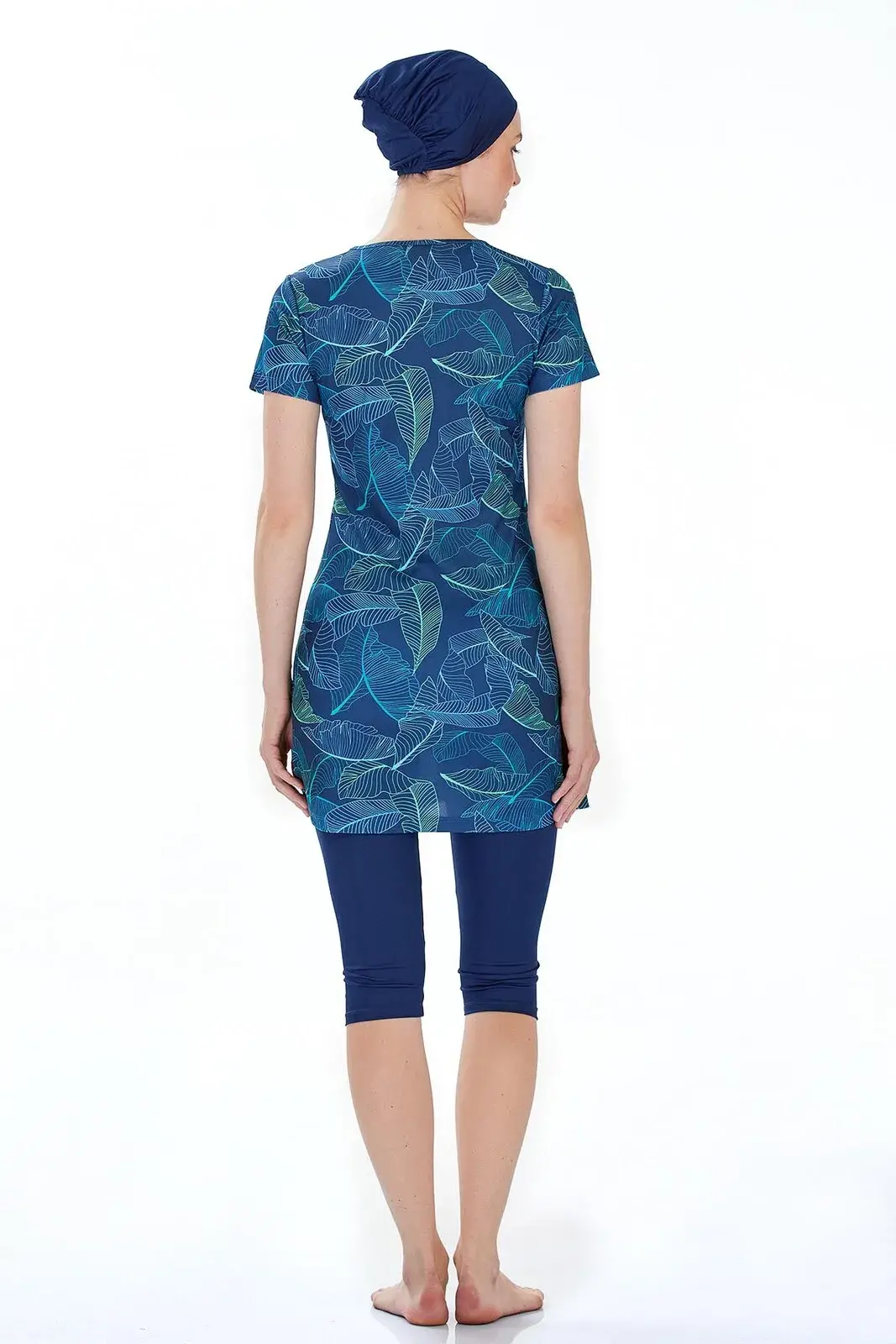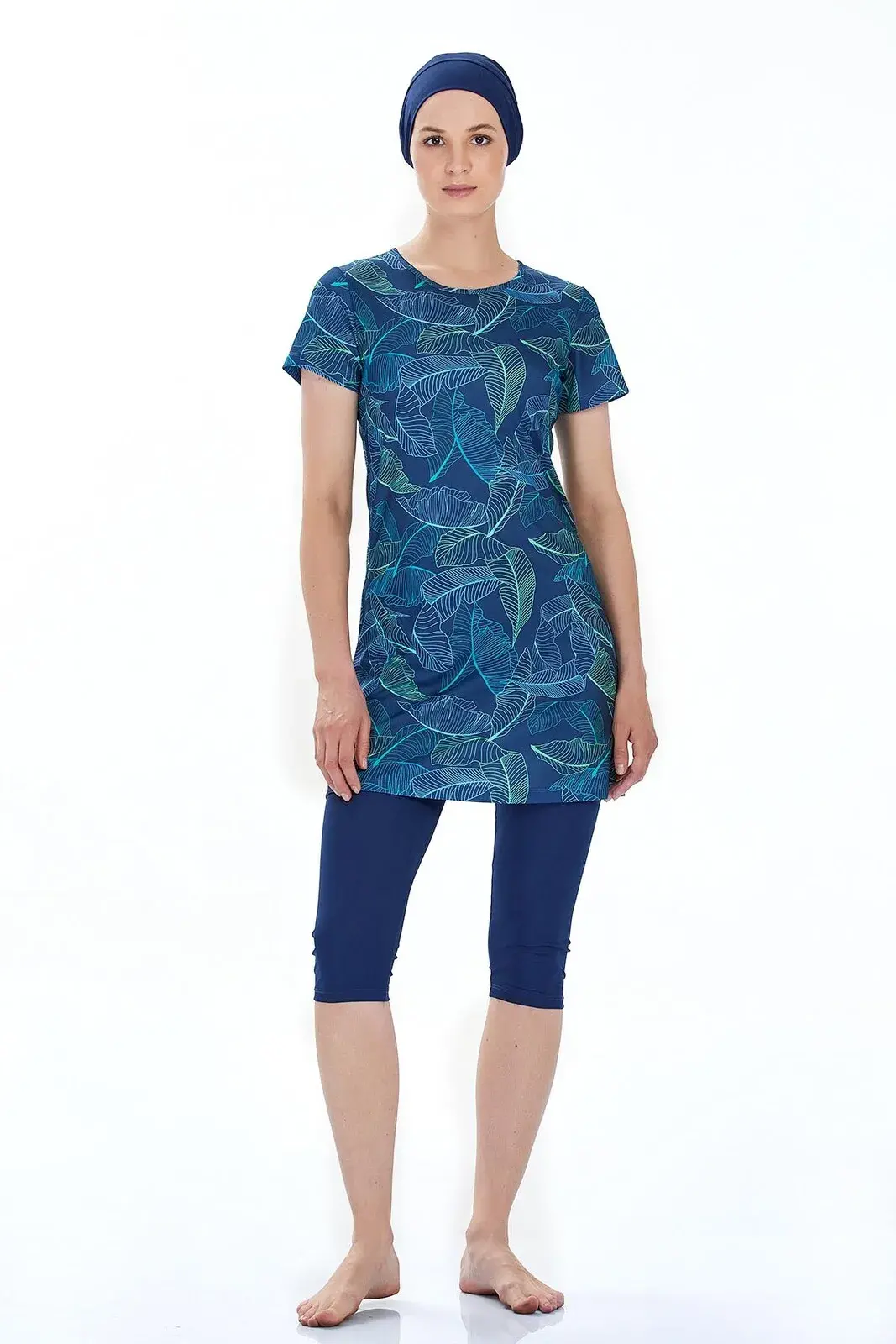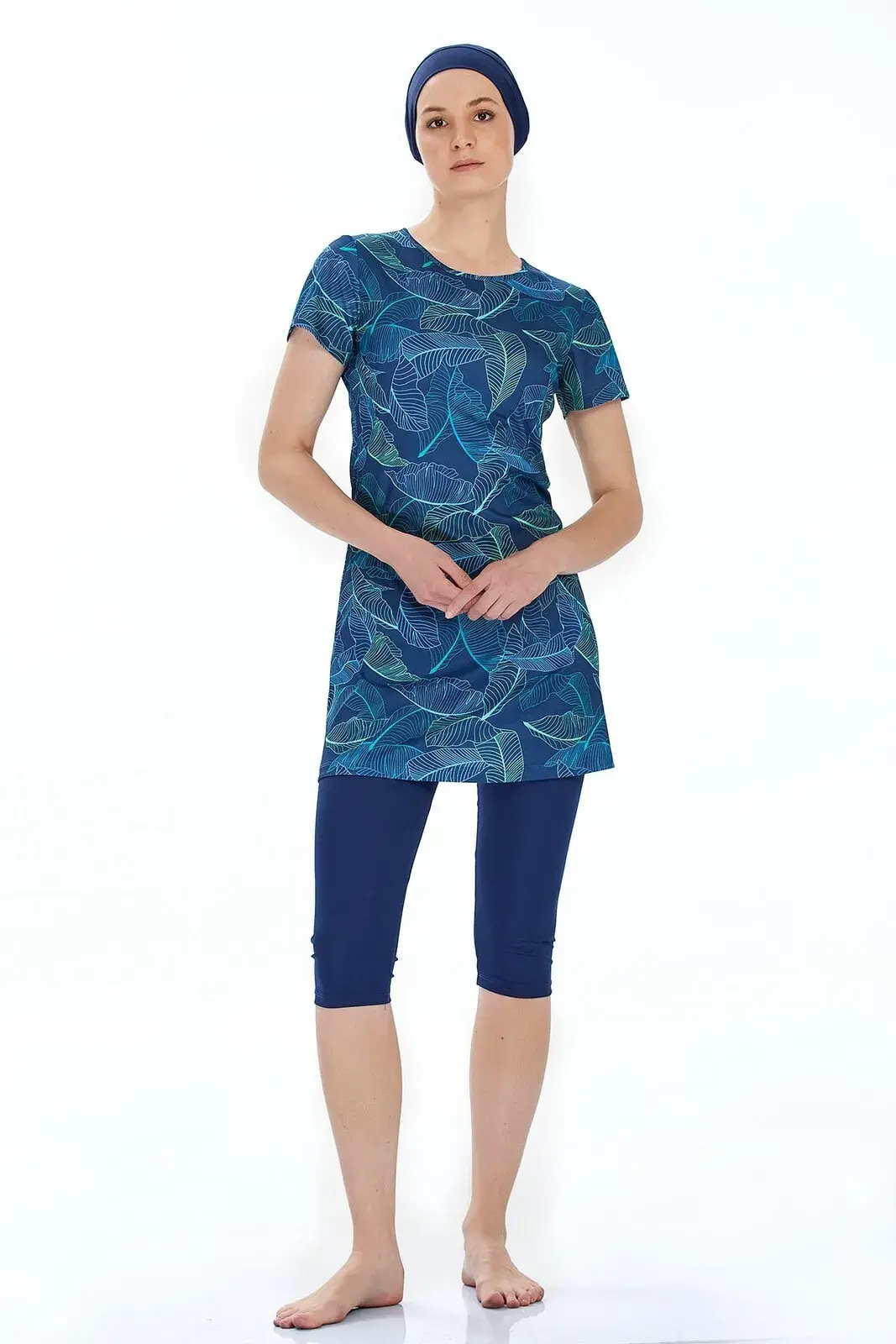 Rozamay 9304-24 Koyu Lacivert Minsi Tabiat Desenli Yarı Kapalı Mayo