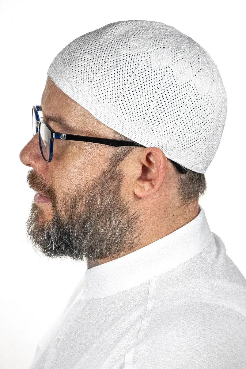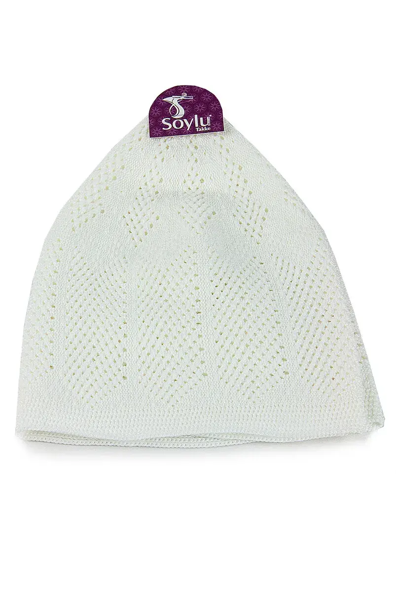 Safir İnce Örme Dantel Namaz Takkesi Beyaz 1 Adet