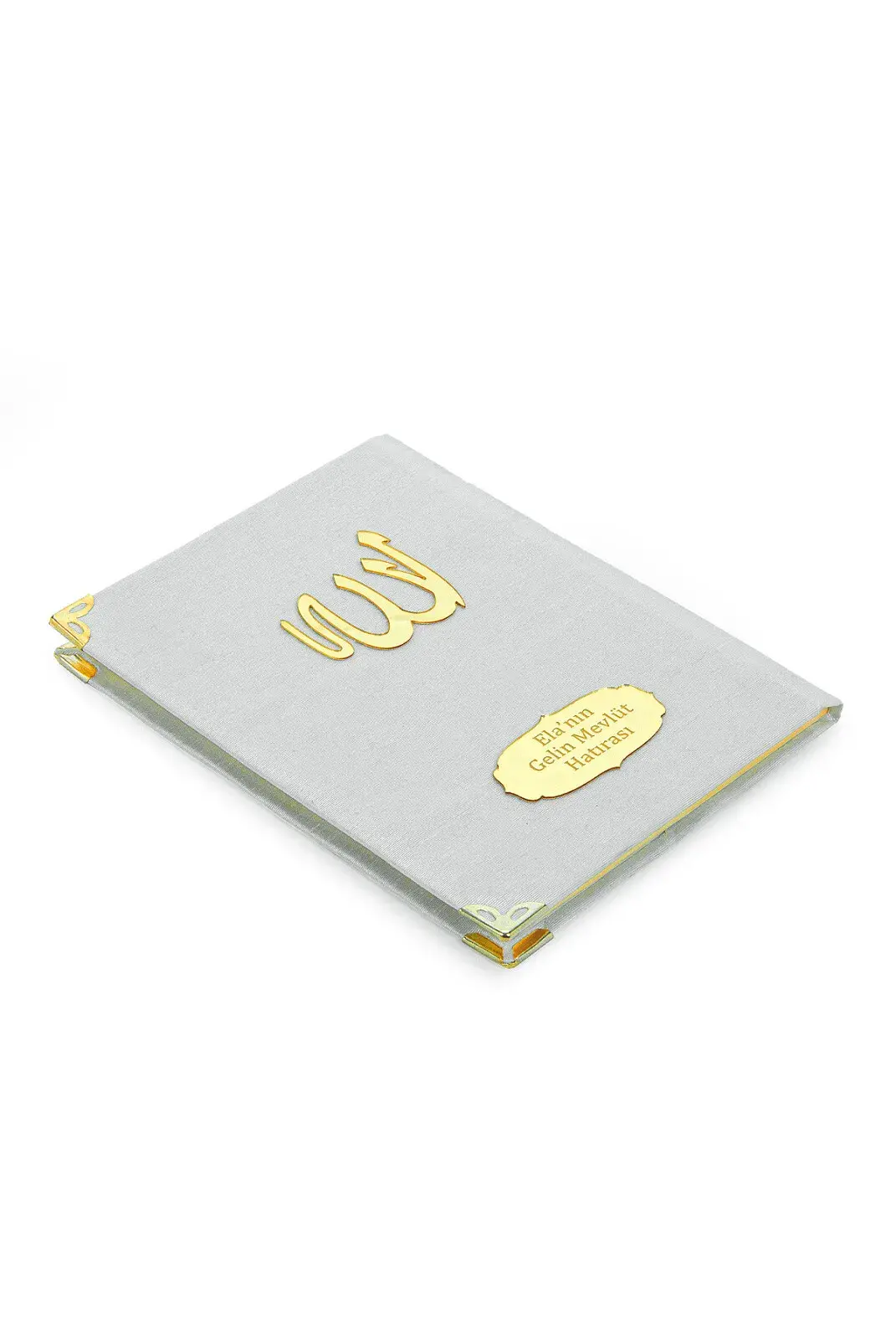 Şantuk Kumaş Kaplı Yasin Kitabı - Çanta Boy - İsme Özel Plakalı - Beyaz