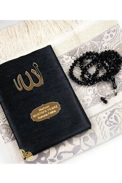 Şantuk Kumaş Kaplı Yasin Kitabı - Çanta Boy - İsme Özel Plakalı - Seccadeli - Tesbihli - Keseli - Siyah Renk - Cemiyet Hediyeliği