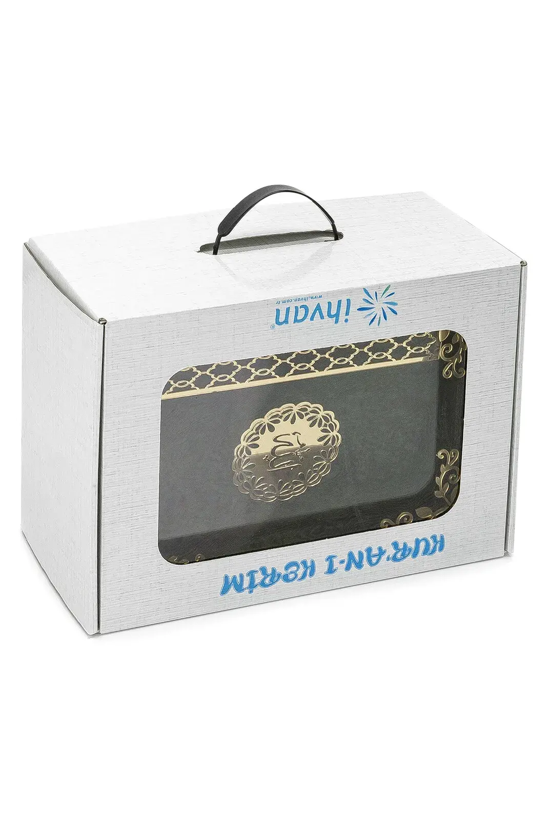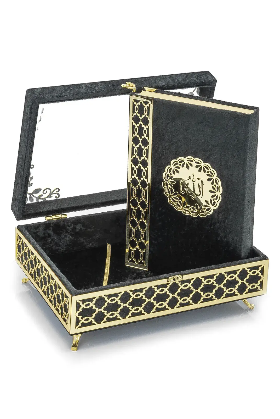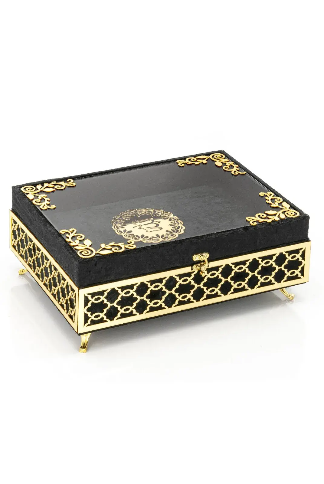 Sandık Ve Kuranı Kerim Aynı Renk Kadife Kumaş İle Kaplı olup Üzeri islami,osmanlı,arapça Allah ve Muhammed Lafızları Elif Vav İle Süsleniştir