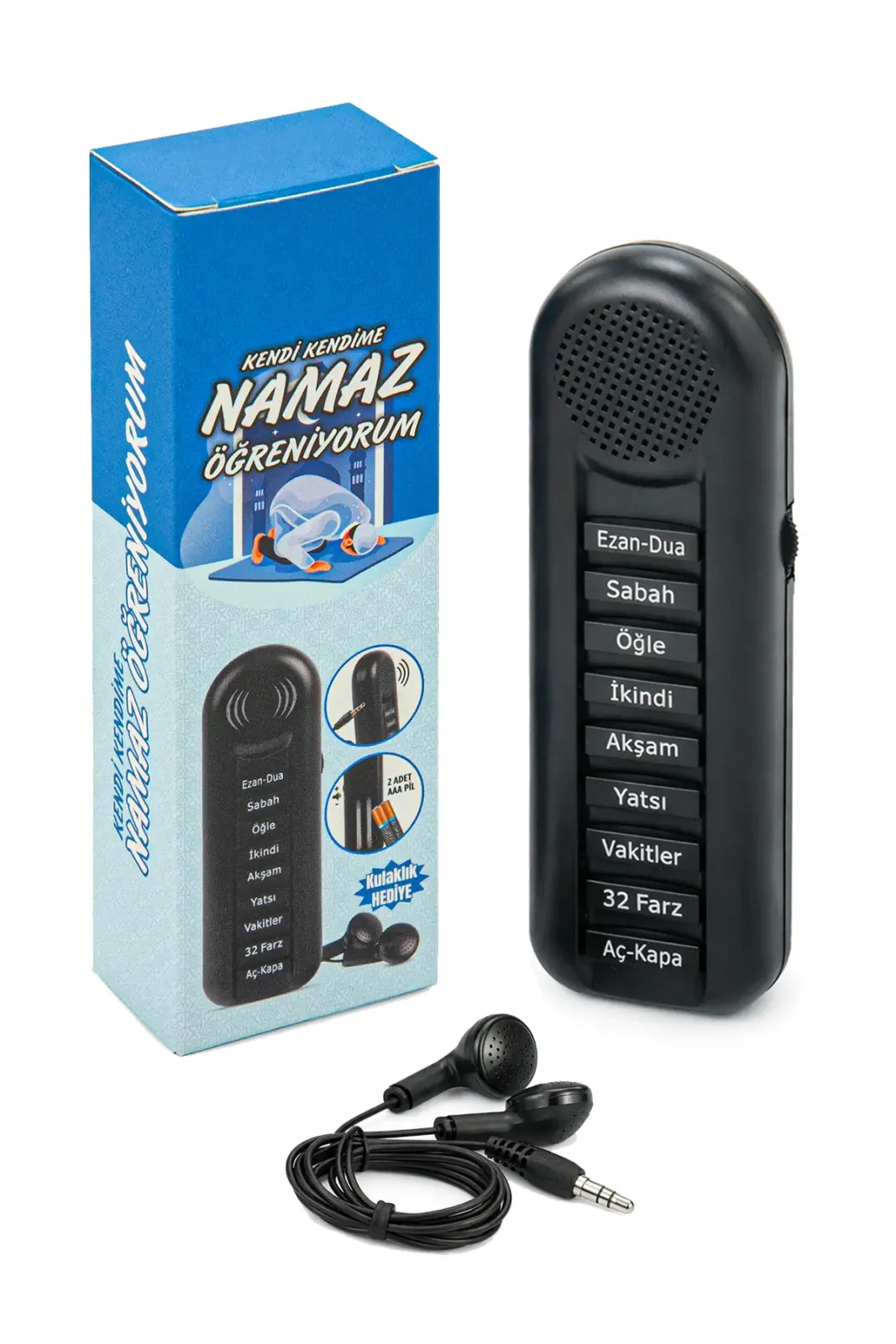 Hem öğretici hem de yönlendirici yapısıyla öne çıkan bu ürün, çocuklar için eğitici bir yardımcı, yetişkinler için ise pratik bir namaz destek cihazı olarak tercih edilebilir. Kulaklık hediyeli olması sayesinde kutu içeriği daha kullanışlı hale gelir.