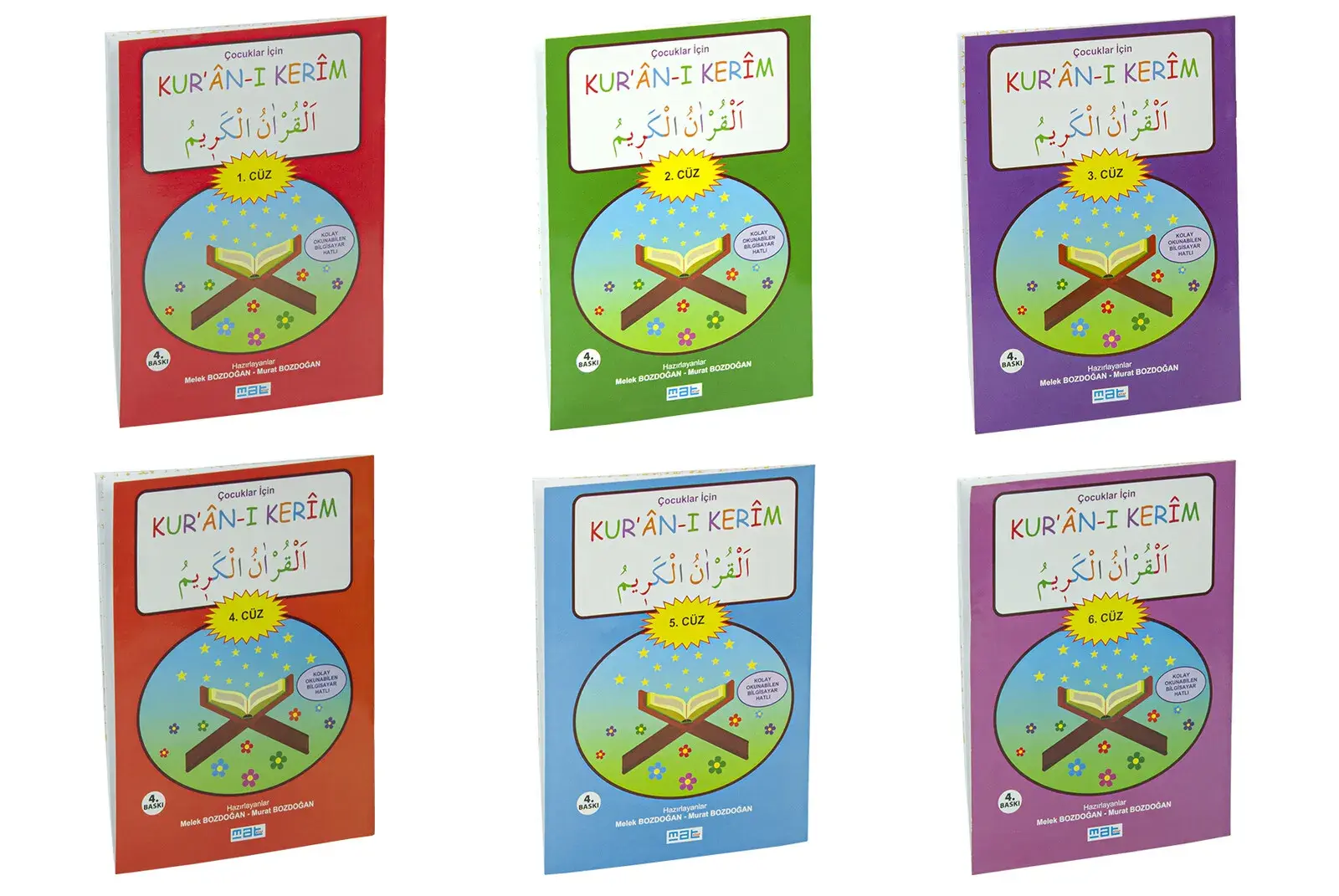 *The Quran for Children* set has been prepared by taking into account the mental competencies and comprehension capacities of children who start to read the Quran in the pre-school and primary education period. In order to enable children to read easily, superior, esre and eutrele letters, med letters, cezm, sedde and tenvinli letters are separated from each other by coloring, unreadable letters are painted gray, and the book is arranged using a larger and more legible writing style. Each part has been prepared in fascicles of different colors, so that children will be motivated by reading the book in a short time and switching to a new book, and so that they can carry the books more easily.