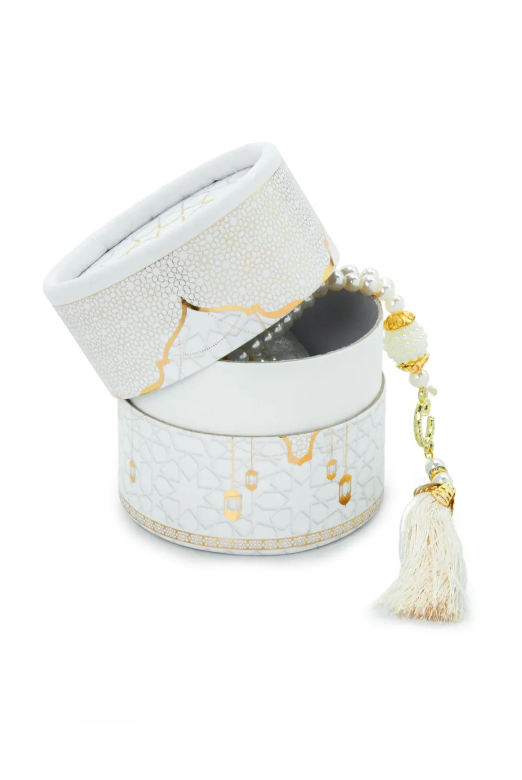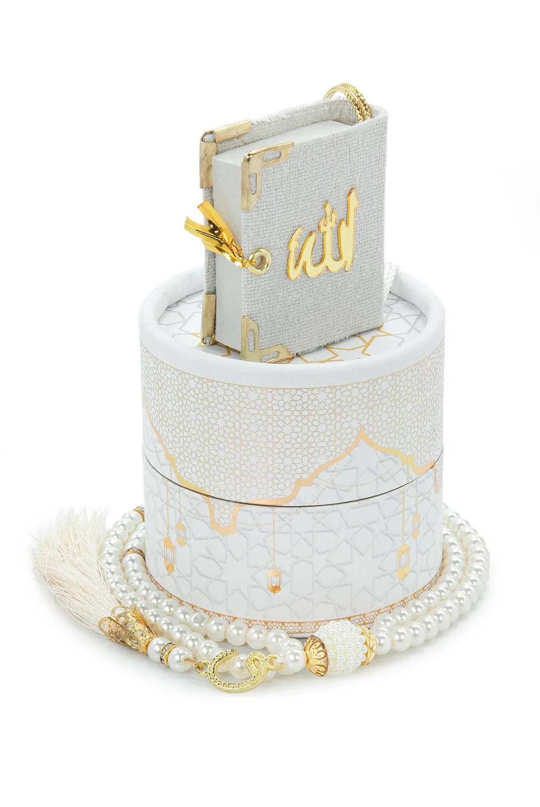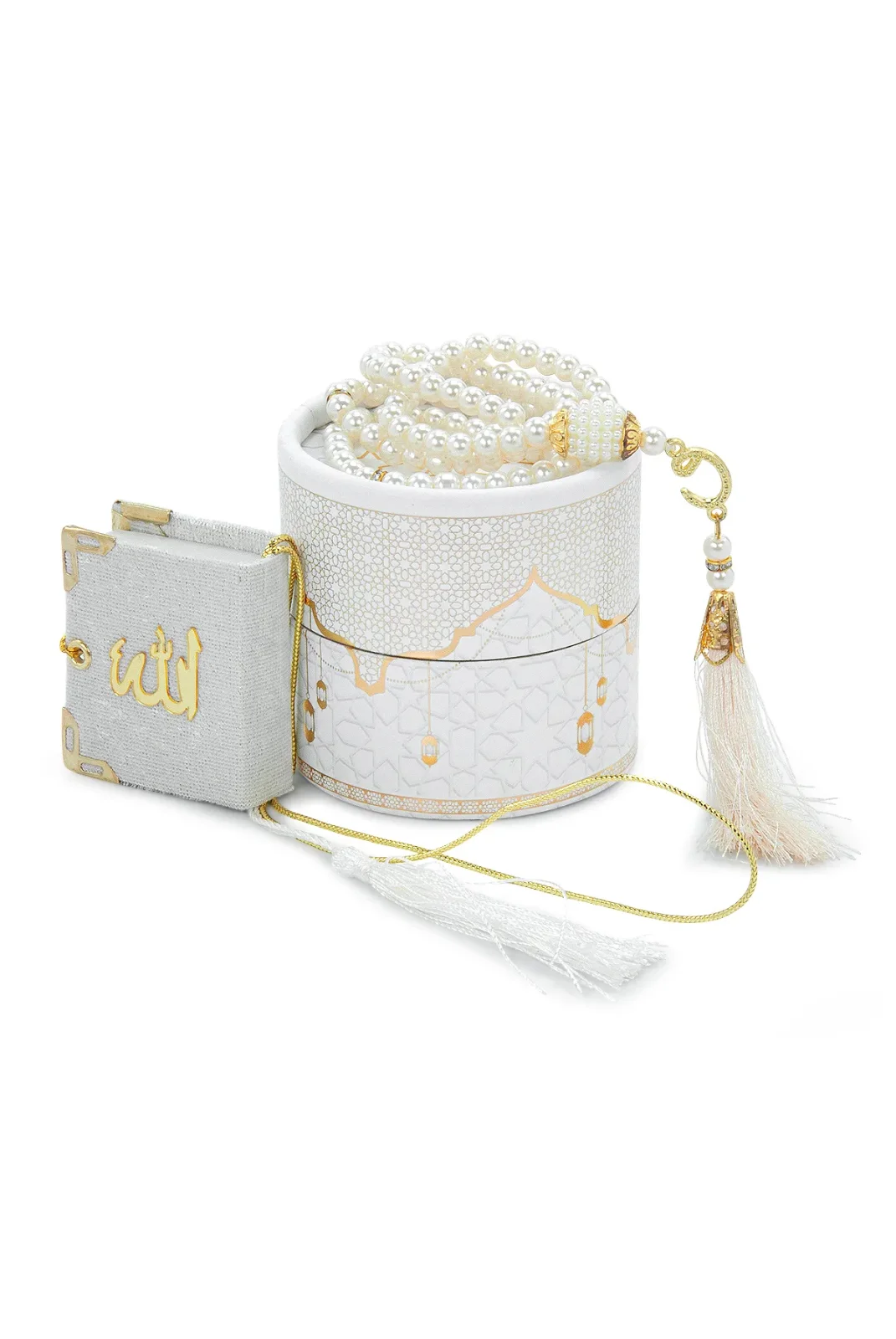 Silindir Kutulu Mini Kuranlı Tesbihli Mevlüt Hediye Seti Beyaz