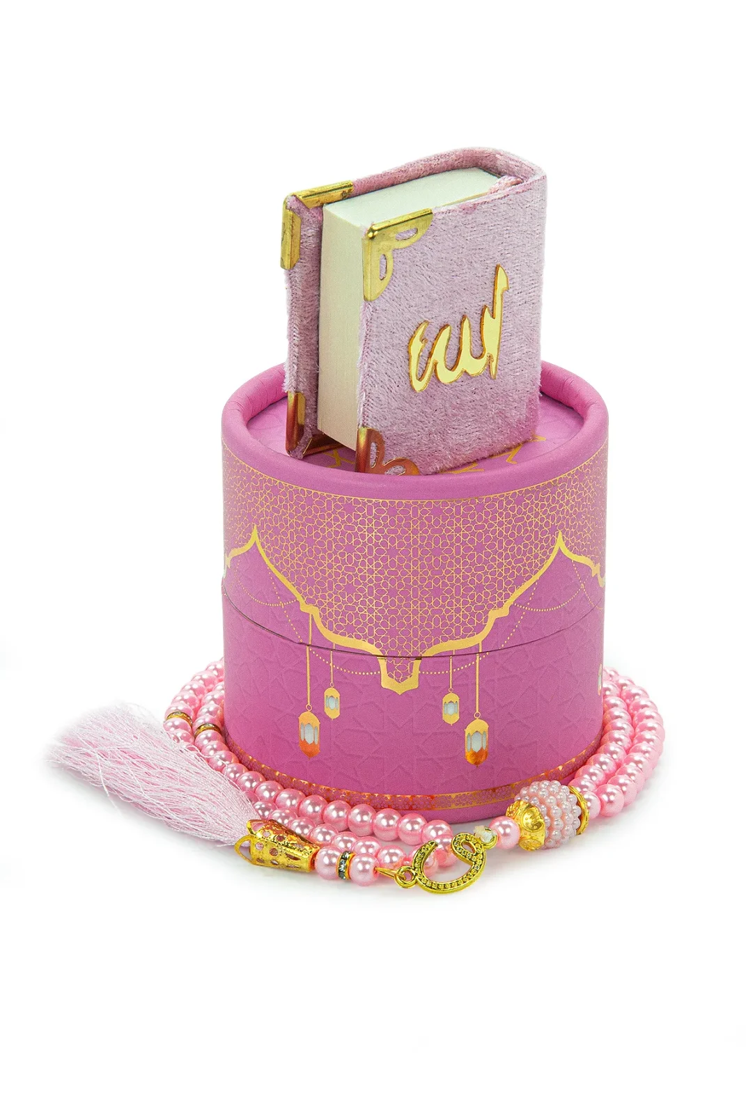 Silindir Kutulu Mini Kuranlı Tesbihli Mevlüt Hediye Seti Pembe