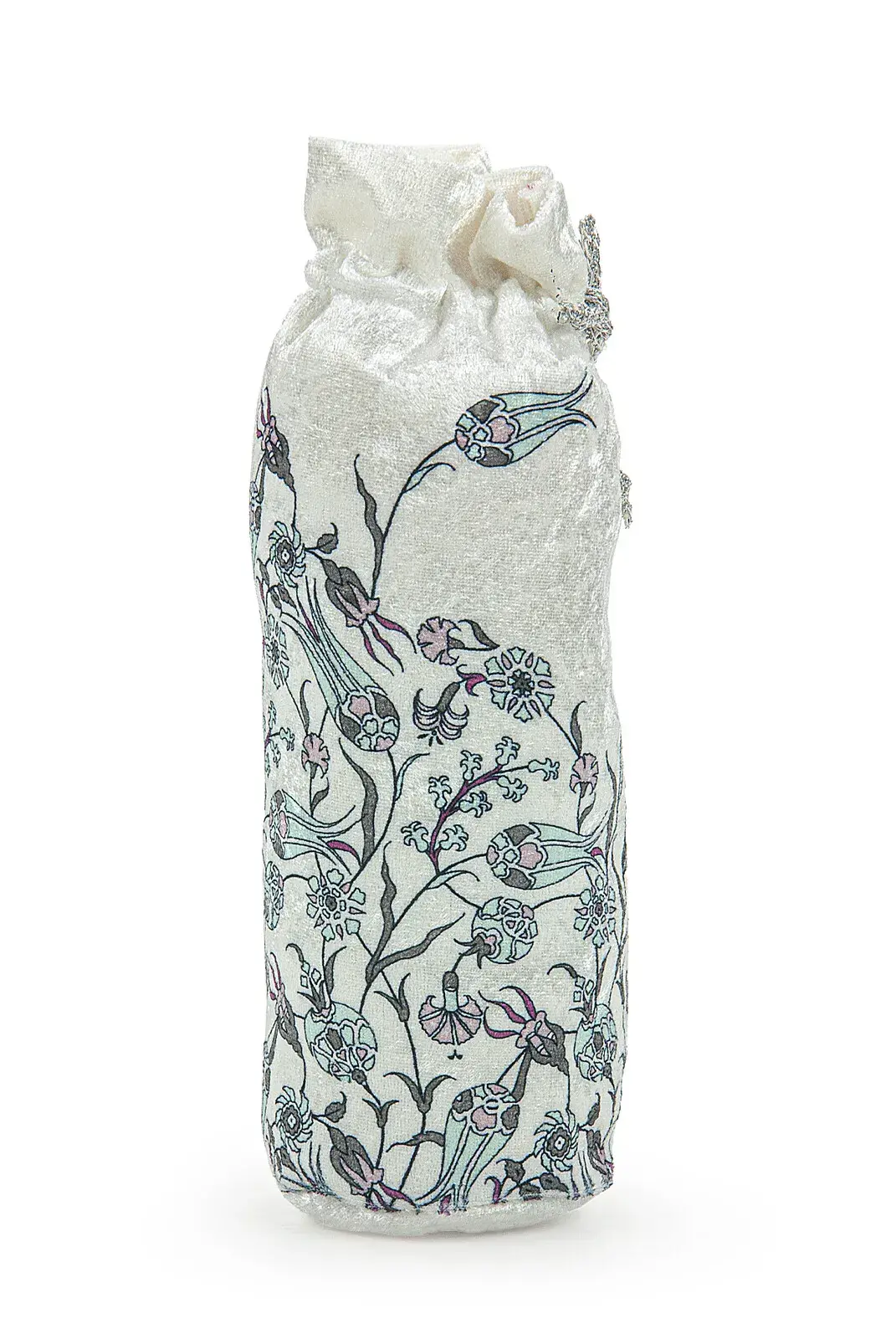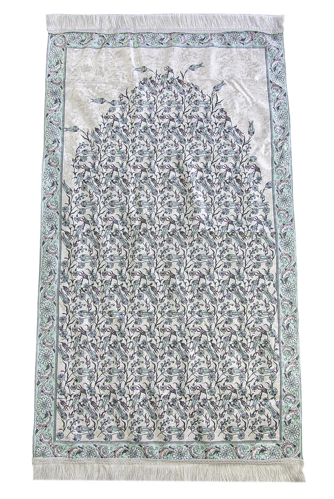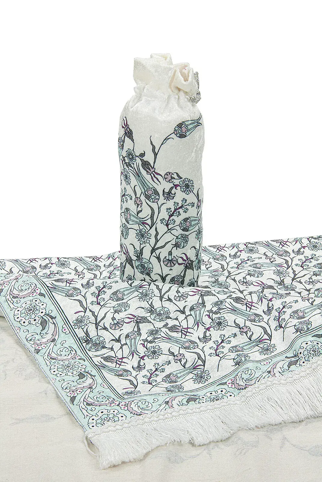 Silk Textured Carrying Bagged Tulip-Embroidered Prayer Rug - Mint Green