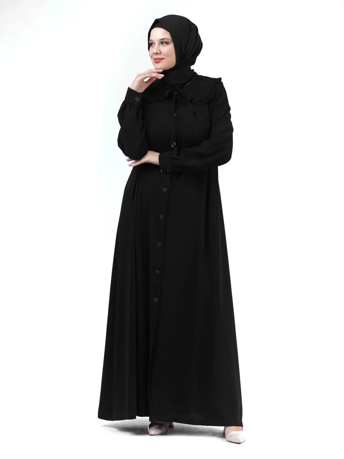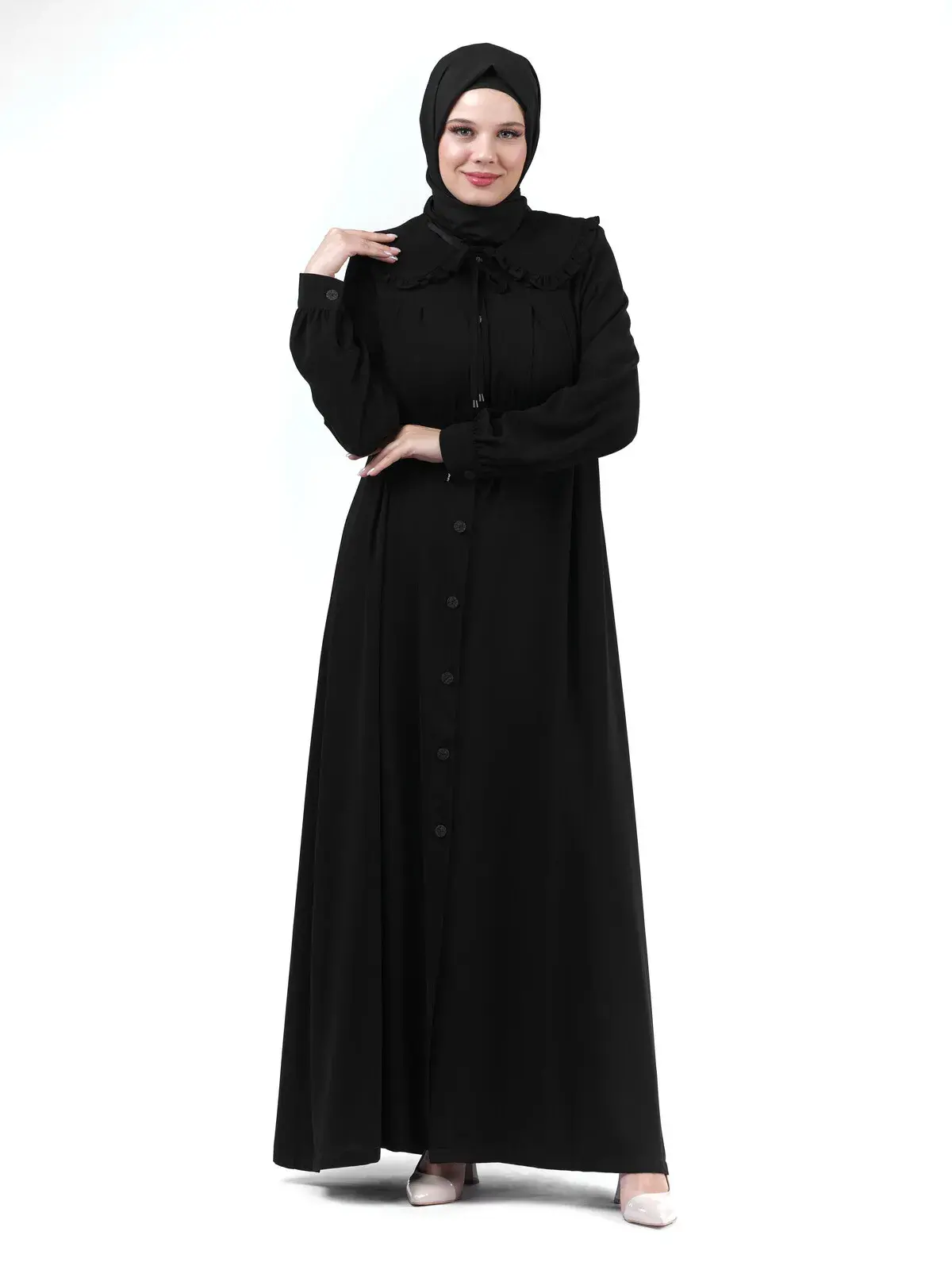 Siyah Bebe Yaka Pileli Manşetli Düğmeli Tesettür Ferace 24352