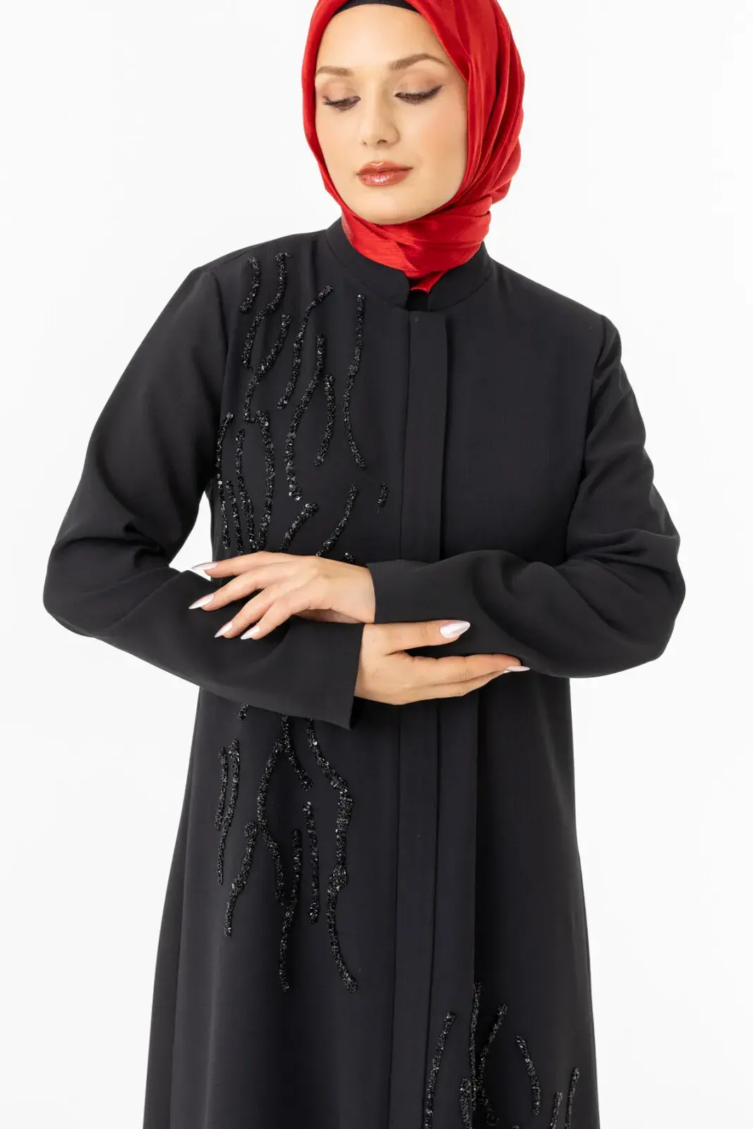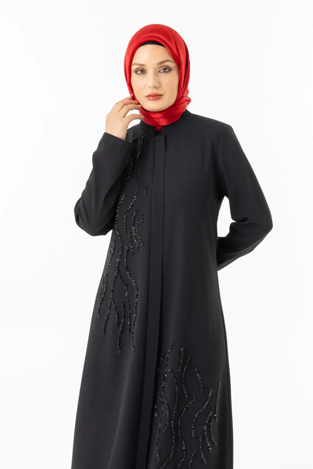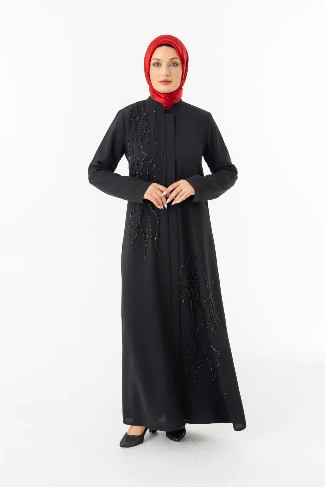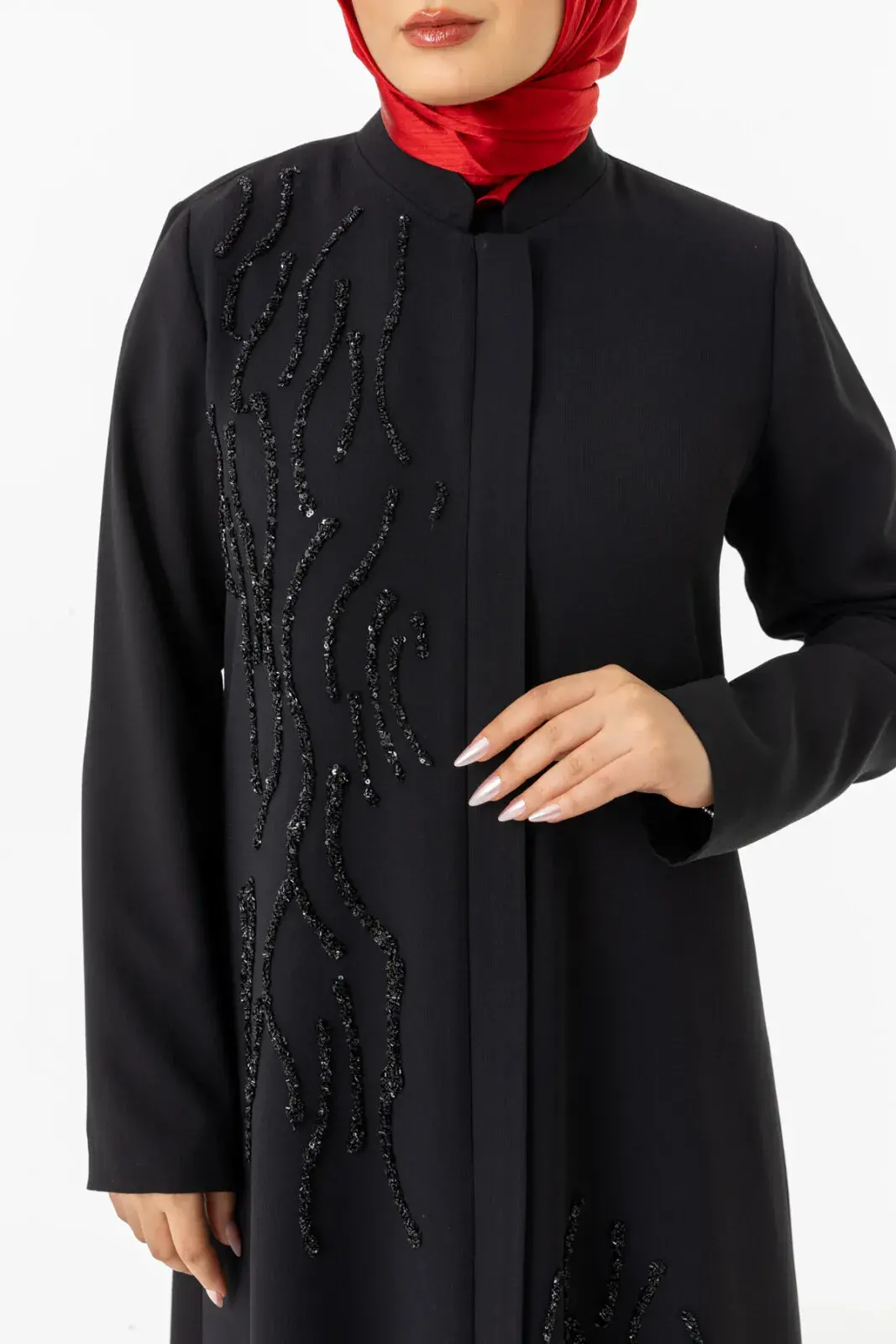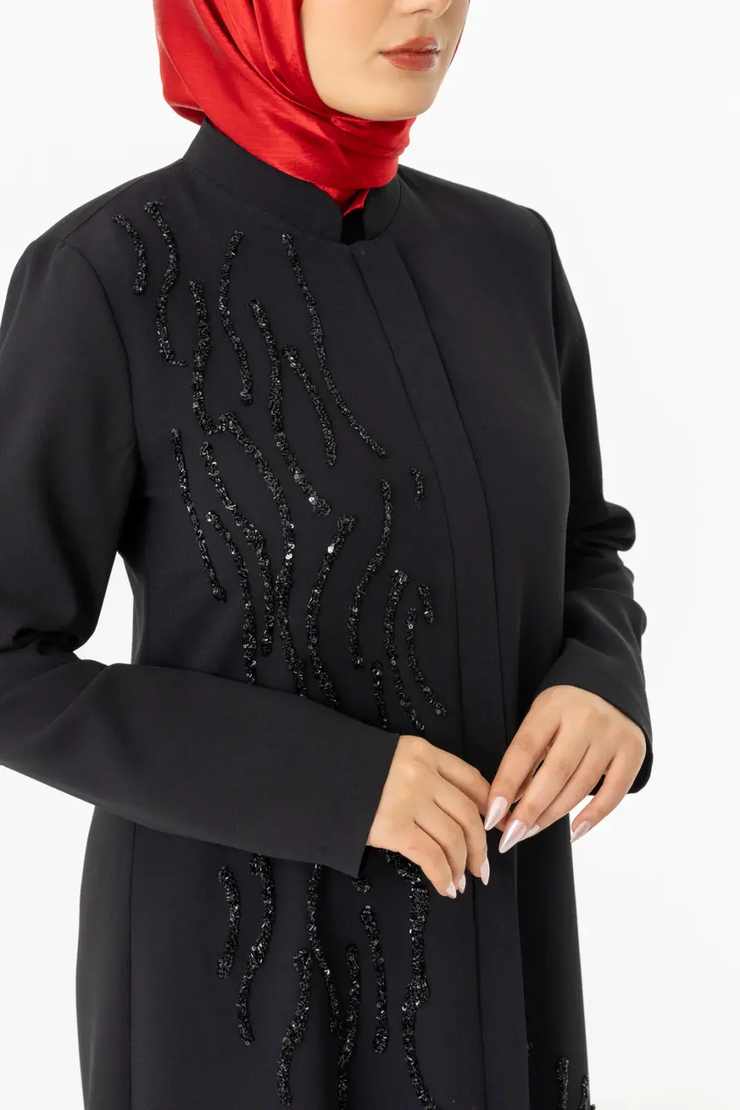 Bu taş süslemeleri feraceye şık bir görüntü kazandırır.