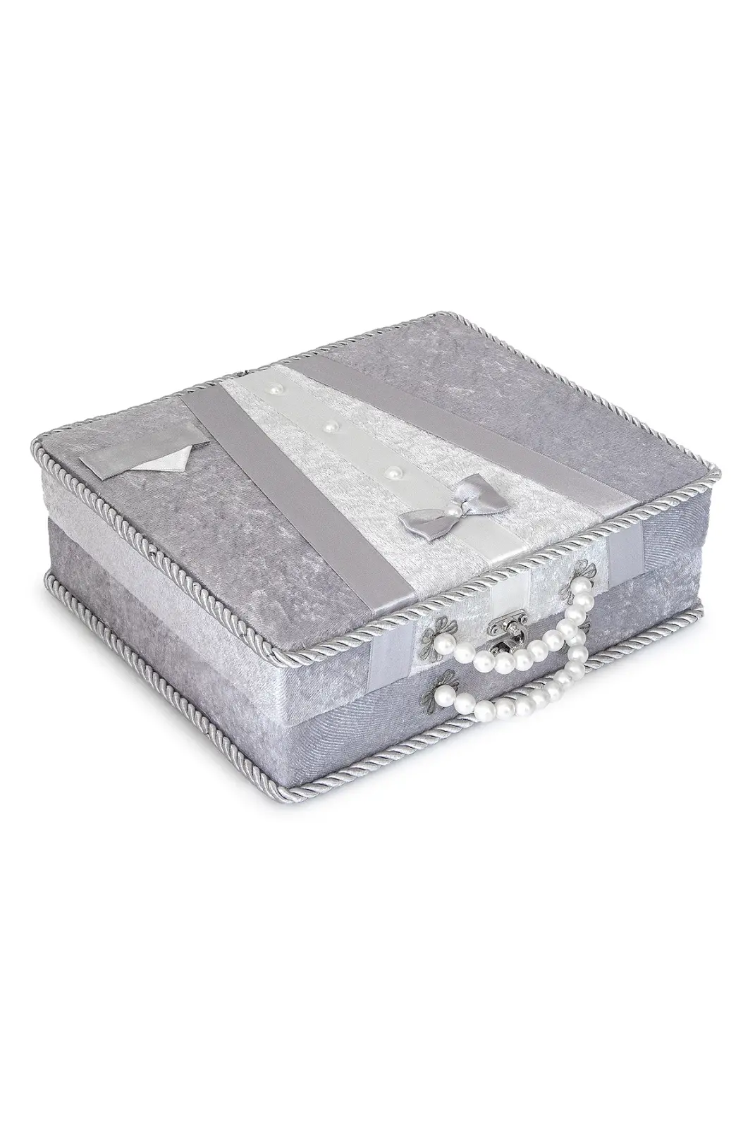 Bu şık ve zarif kadife sandık, damat bohçası için özel olarak tasarlanmıştır. Beyaz kadife kumaş ile kaplanmış olan sandık, hem estetik hem de işlevsel bir kullanım sunar. Kaliteli MDF malzemeden üretilmiş yapısı, uzun ömürlü ve dayanıklı bir kullanım sağlar.
