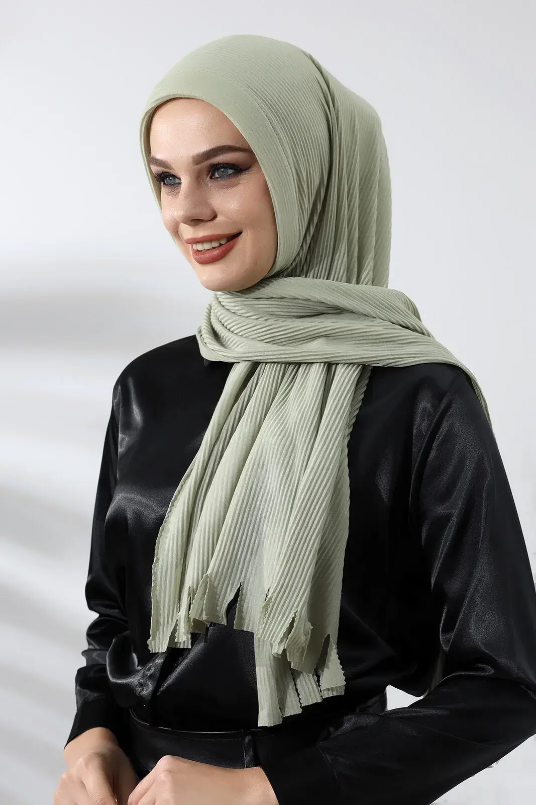 Su Yeşili Tesettür Hazır Pratik Fitilli Pamuklu Şal