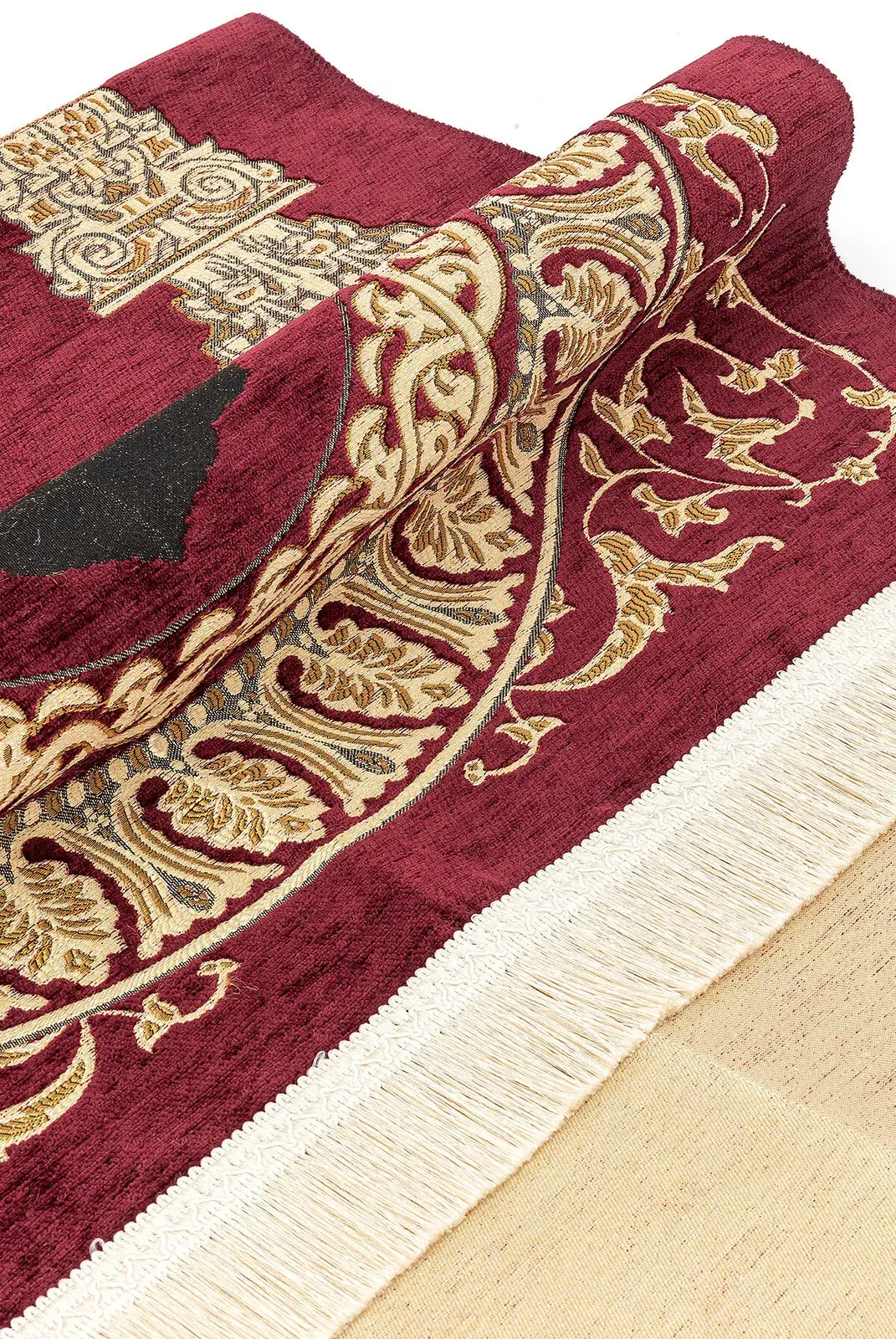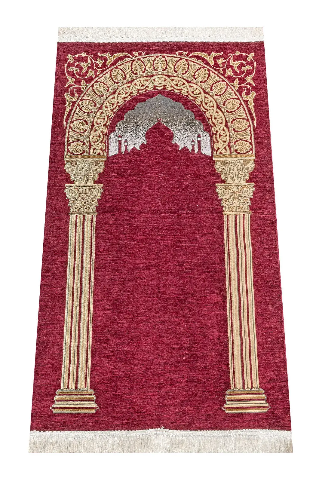 Taç Mahal Desenli Şönil Seccade - Bordo Renk