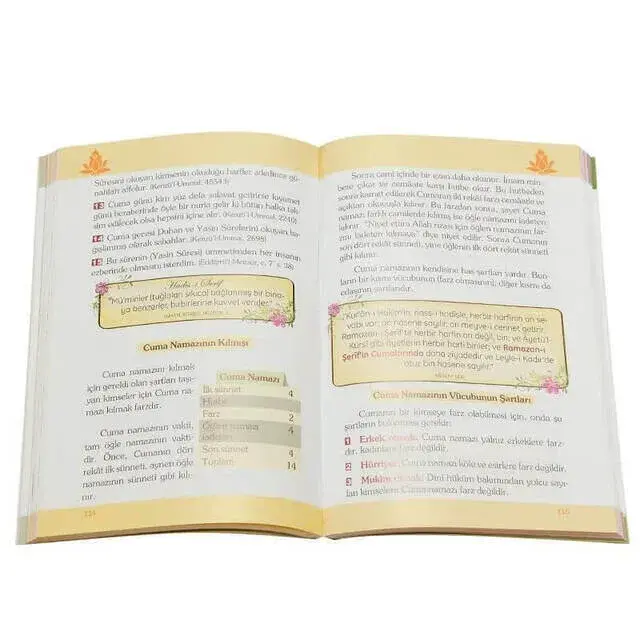 Bu sebeble namazin rukiinleri ve kilini ve sect;i resimlerle anlatilmi ve sect;, erkekler ile hammlarin namazindaki farklilik- lara i ve sect;aret igin ayri ayri gizimler yapilmi ve sect;tir. Aynca abdes- tin alini ve sect;i da yine resimlerle tarif edilmi ve sect;tir. Daha sonra namazla ilgili bazi fikhi bilgiler ile namaz ge ve sect;itleri hakkin-da izahlara yer verilmi ve sect;tir.