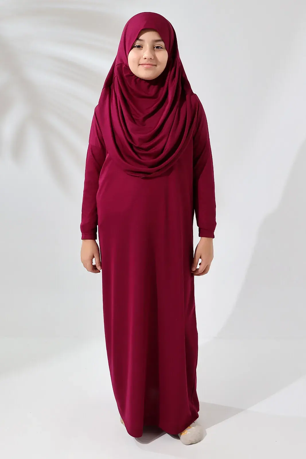 Tek Parça Pratik Başörtülü Çocuk Namaz Elbisesi Fuşya