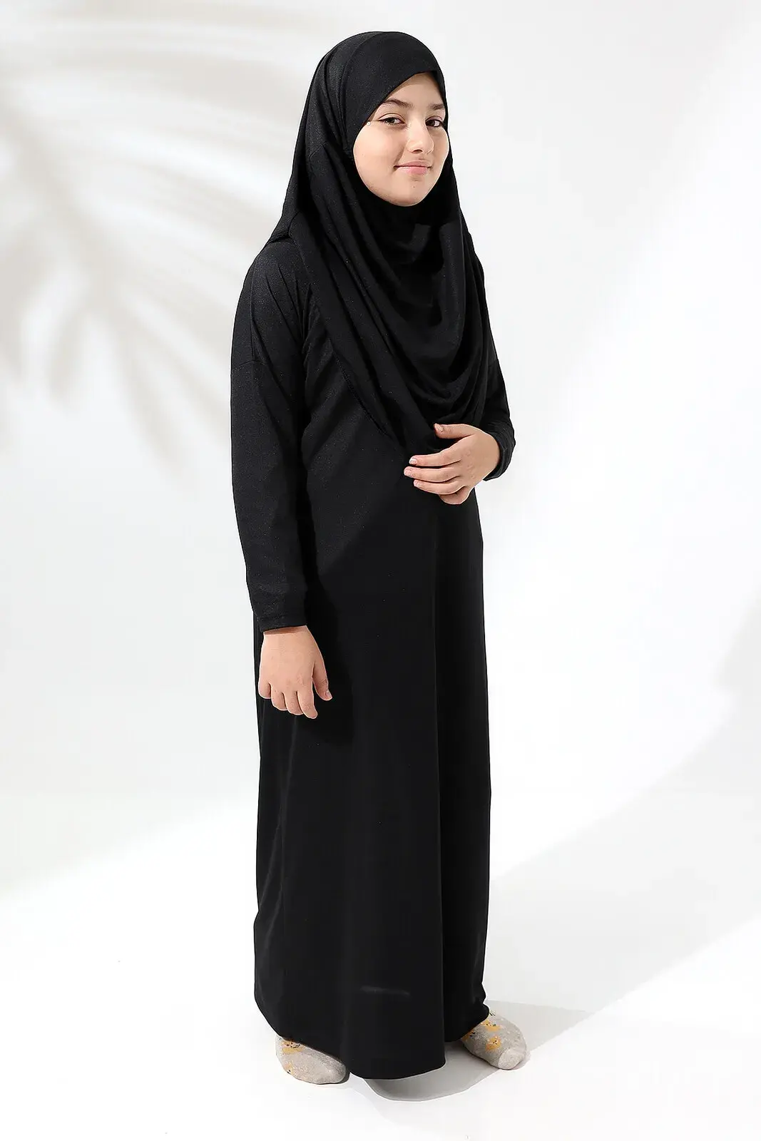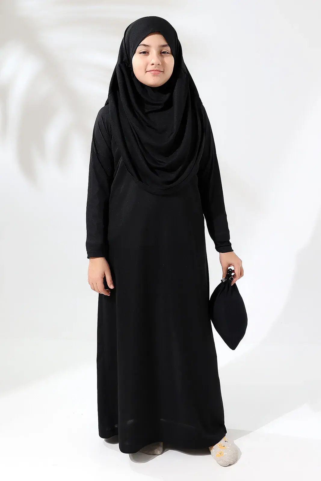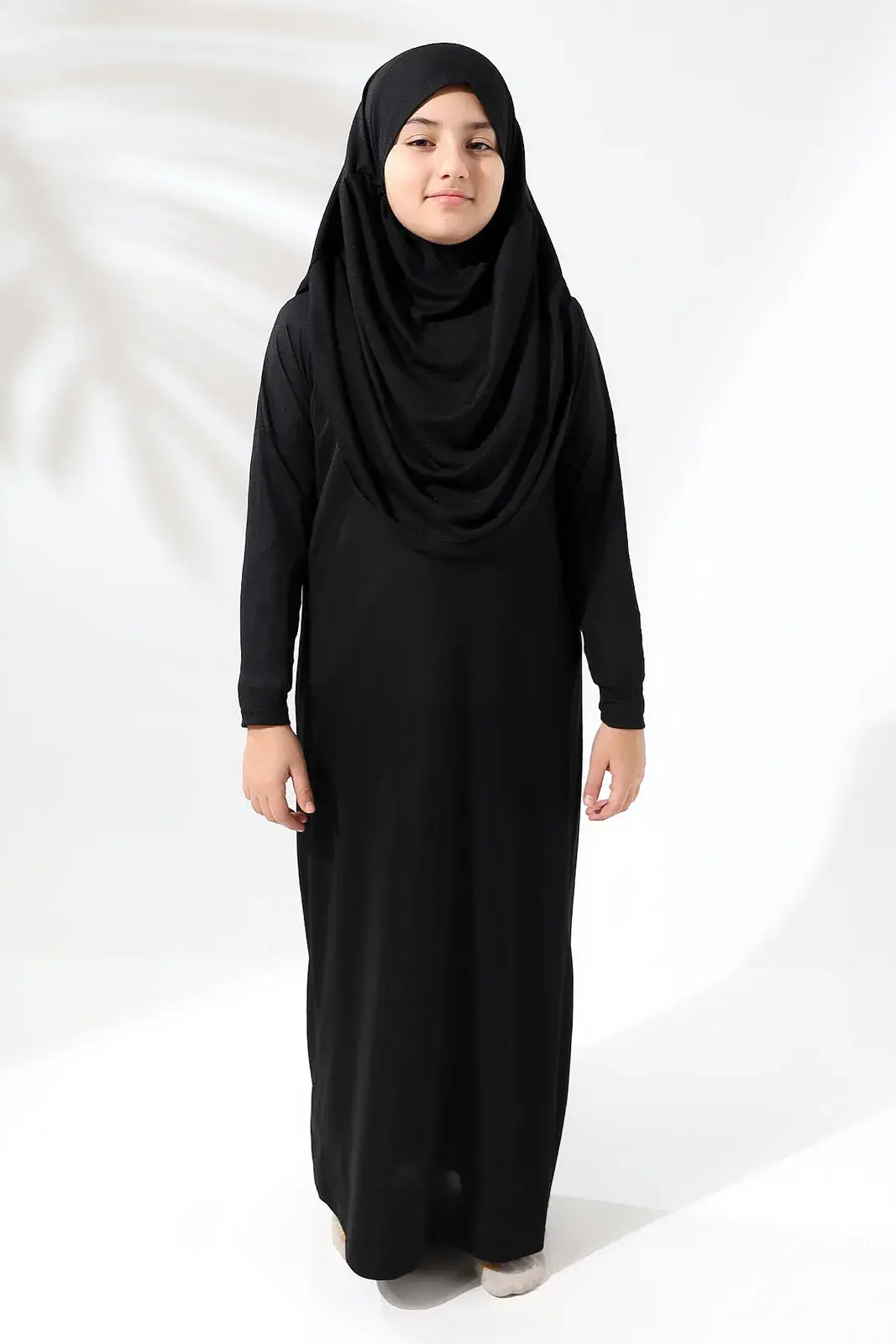Tek Parça Pratik Başörtülü Çocuk Namaz Elbisesi Siyah