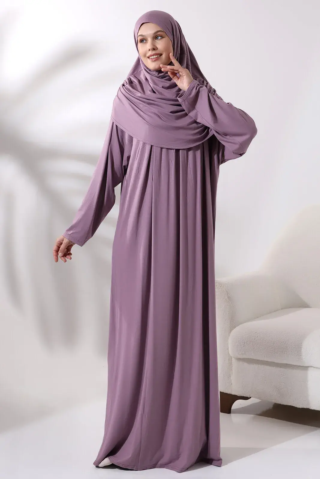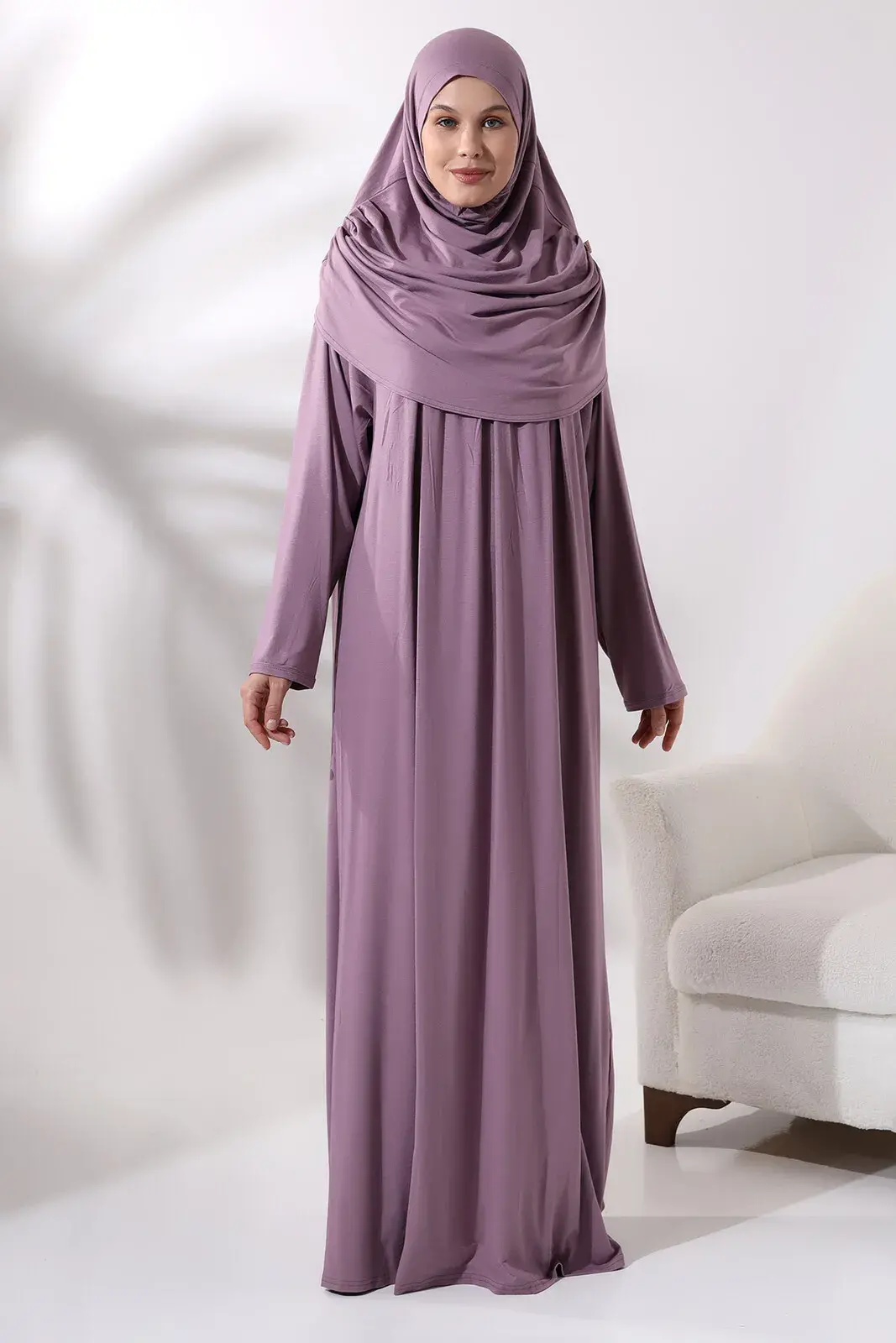 Tek Parça Pratik Başörtülü Robalı Namaz Elbisesi 8015 Gül Kurusu