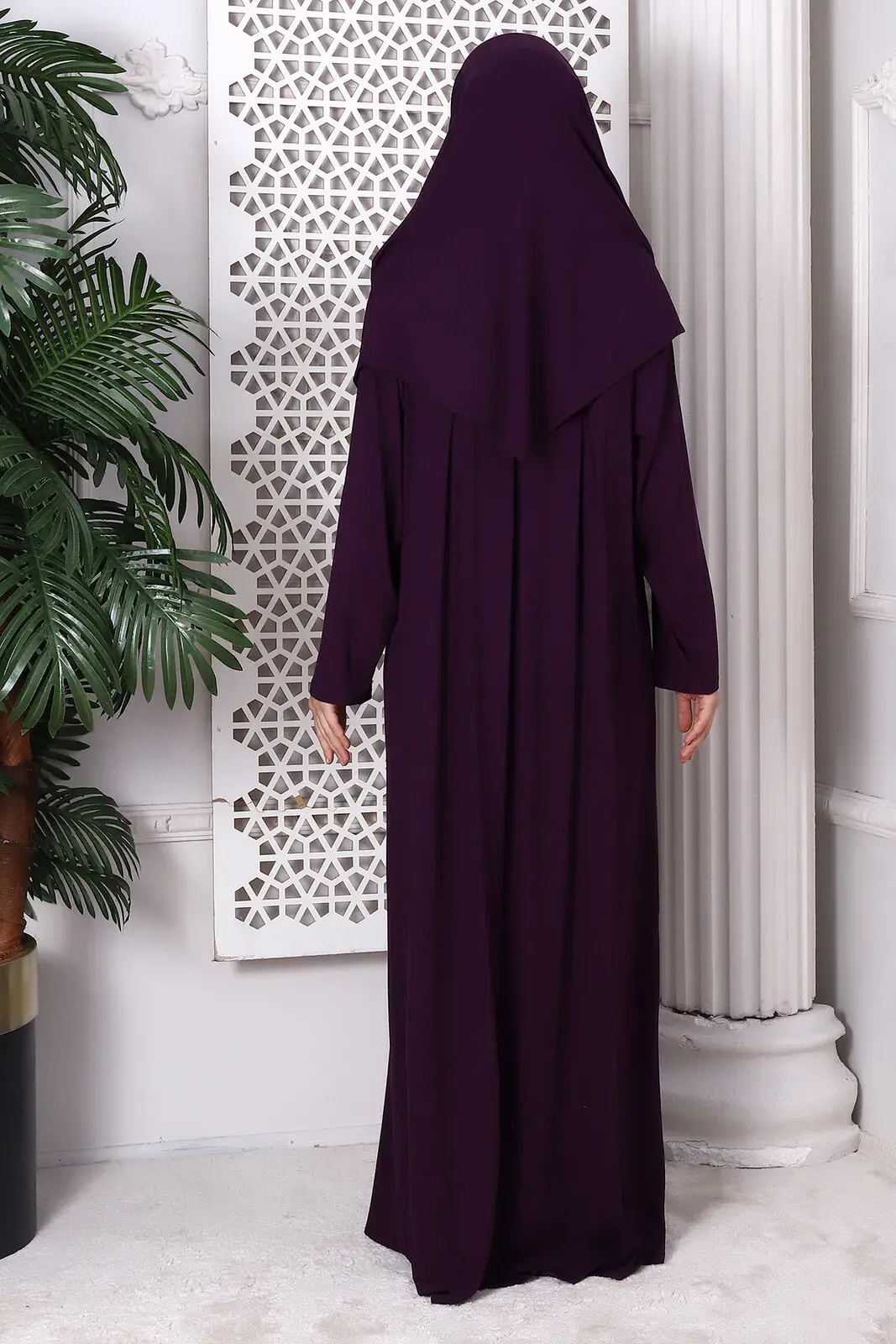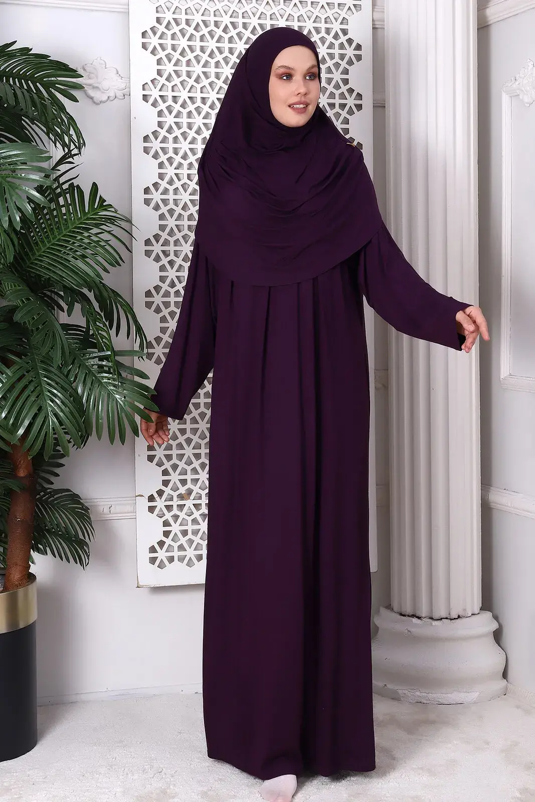 Ürün başörtüsüyle tek parçadan oluşur, pratik ve kolay giyilir.