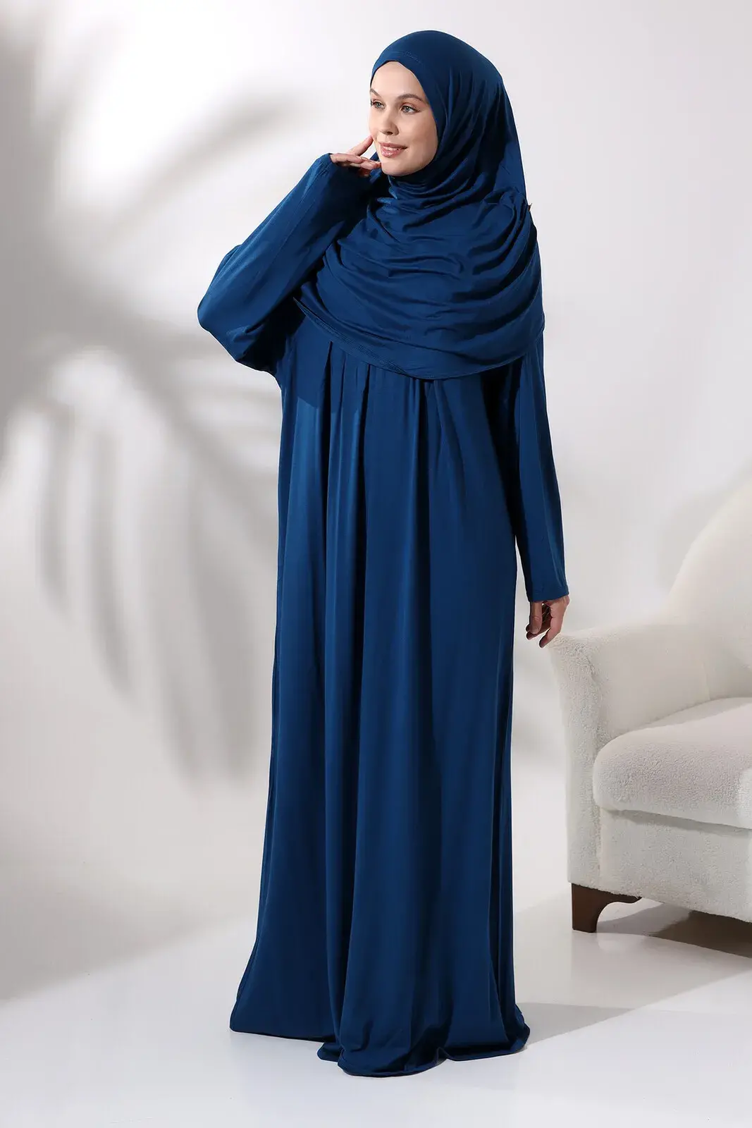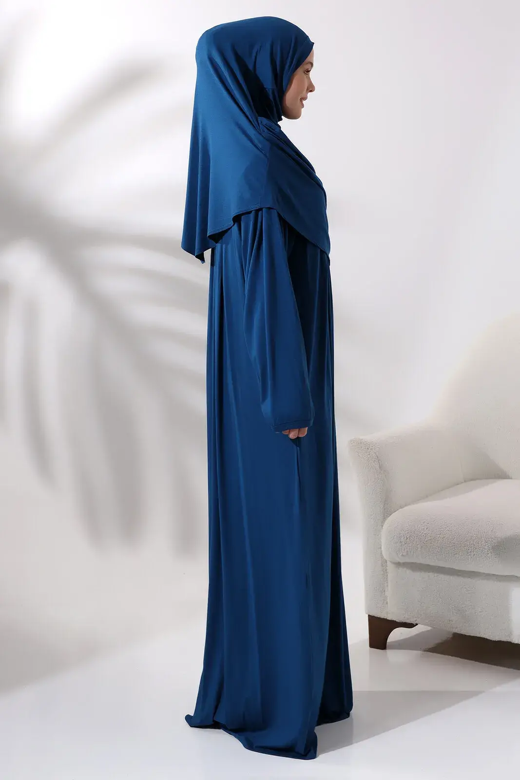 Tek Parça Pratik Başörtülü Robalı Namaz Elbisesi 8015 Petrol