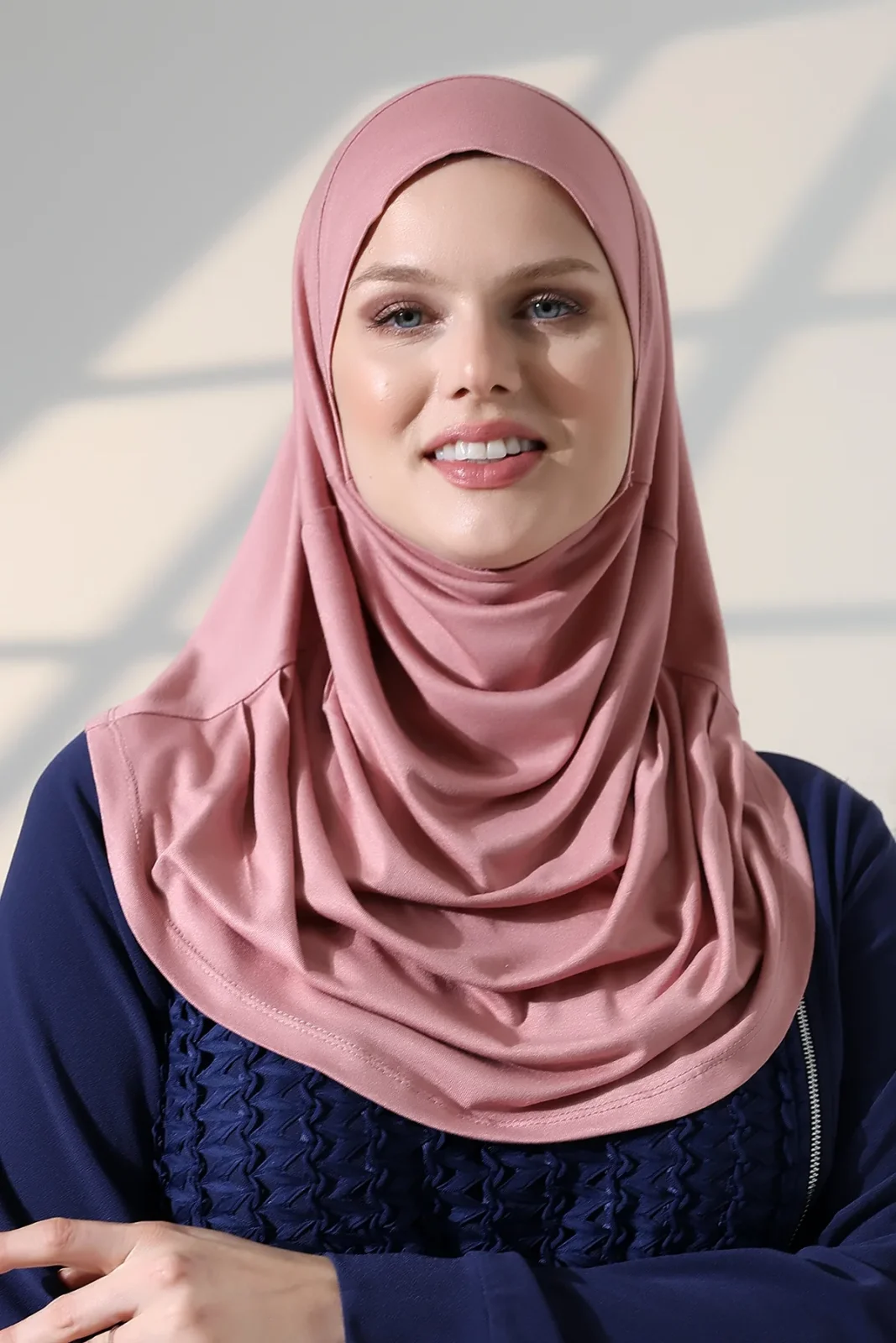 Tek Parça Pratik Namaz Başörtüsü, Hazır Geçmeli Tesettür Şal - Pembe