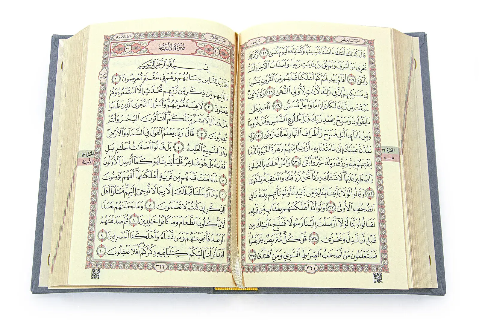 This special product, which presents the Holy Quran perfectly, is an important book that every Muslim should have in their home. It is Medina Calligraphy, which is a beautiful and aesthetic writing style unique to the Medina Mushaf. The luxurious and durable thermo leather covering ensures the Quran lasts for a long time and provides comfort during use. Using the QR code, you can listen to the text of the Quran with the recitation of eight different hafizes, thus allowing you to understand the Quran and improve your memorization knowledge.