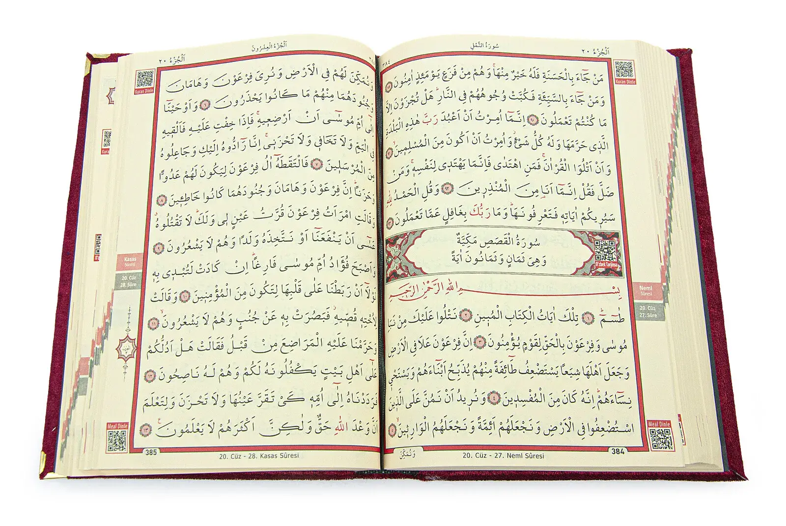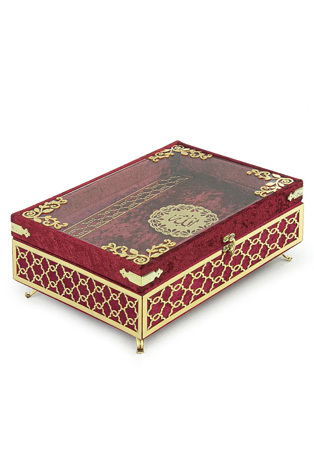 The Chest And The Quran Are Covered With The Same Color Velvet Fabric And They Are Decorated With The Islamic, Ottoman, Arabic Words Of Allah and Muhammad Elif Vav
