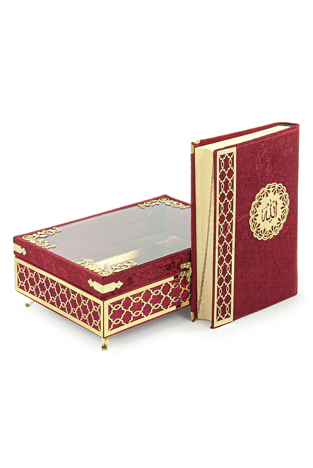 Transparent Plexiglass Velvet Covered Dowery Quran Set with Chest - Red