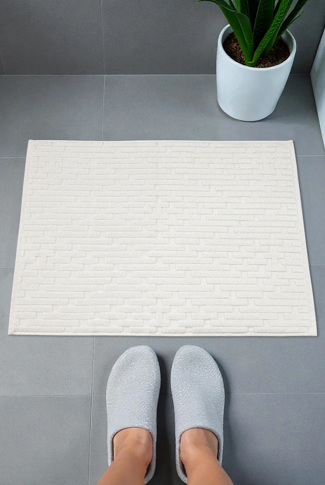 Banyonuzda hem şıklığı hem de yüksek kullanım konforunu bir arada sunan Tuğla Desenli Beyaz Ayak Havlusu Seti, %100 pamuk dokusuyla suyu hızlıca emerek pratik bir kullanım sağlar. Yumuşak yüzeyi ve hafif yapısı sayesinde duş sonrası zeminde biriken suyu anında emer, kayganlığı azaltır ve güvenli bir banyo deneyimi sunar.