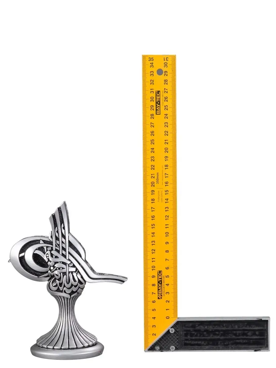 Tuğra formlu Besmele-i Şerif’i boyutlandırarak tasarladığımız ürünümüzün kaidesini