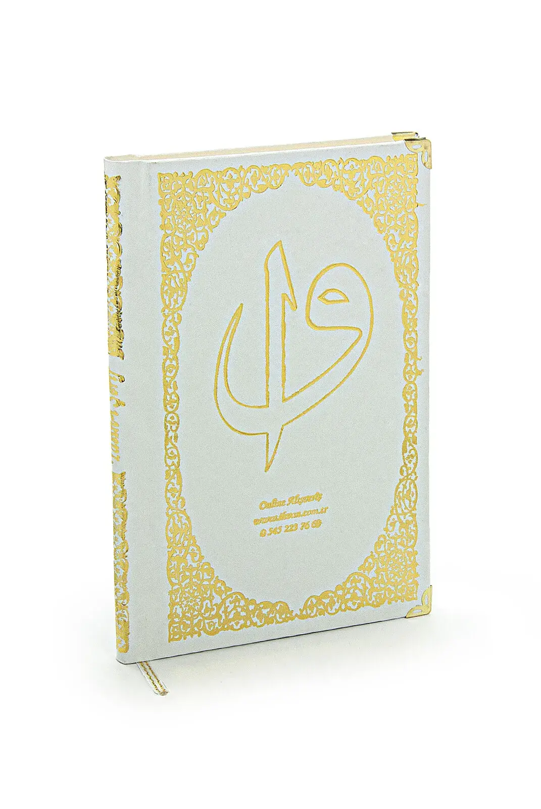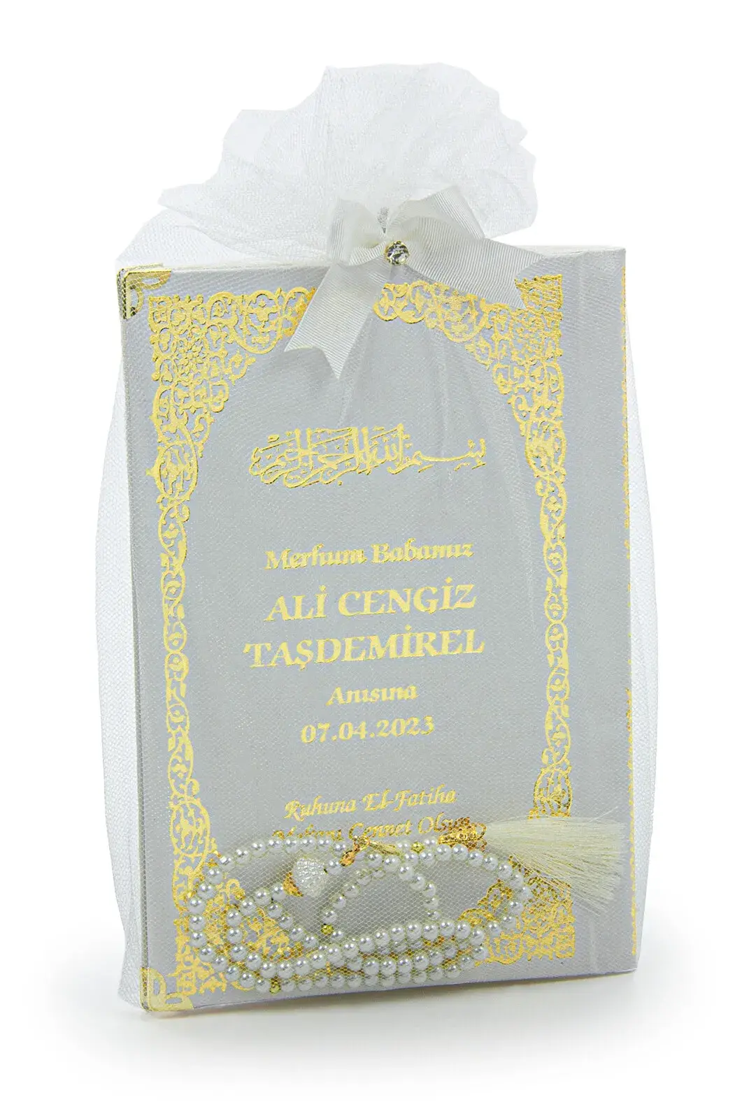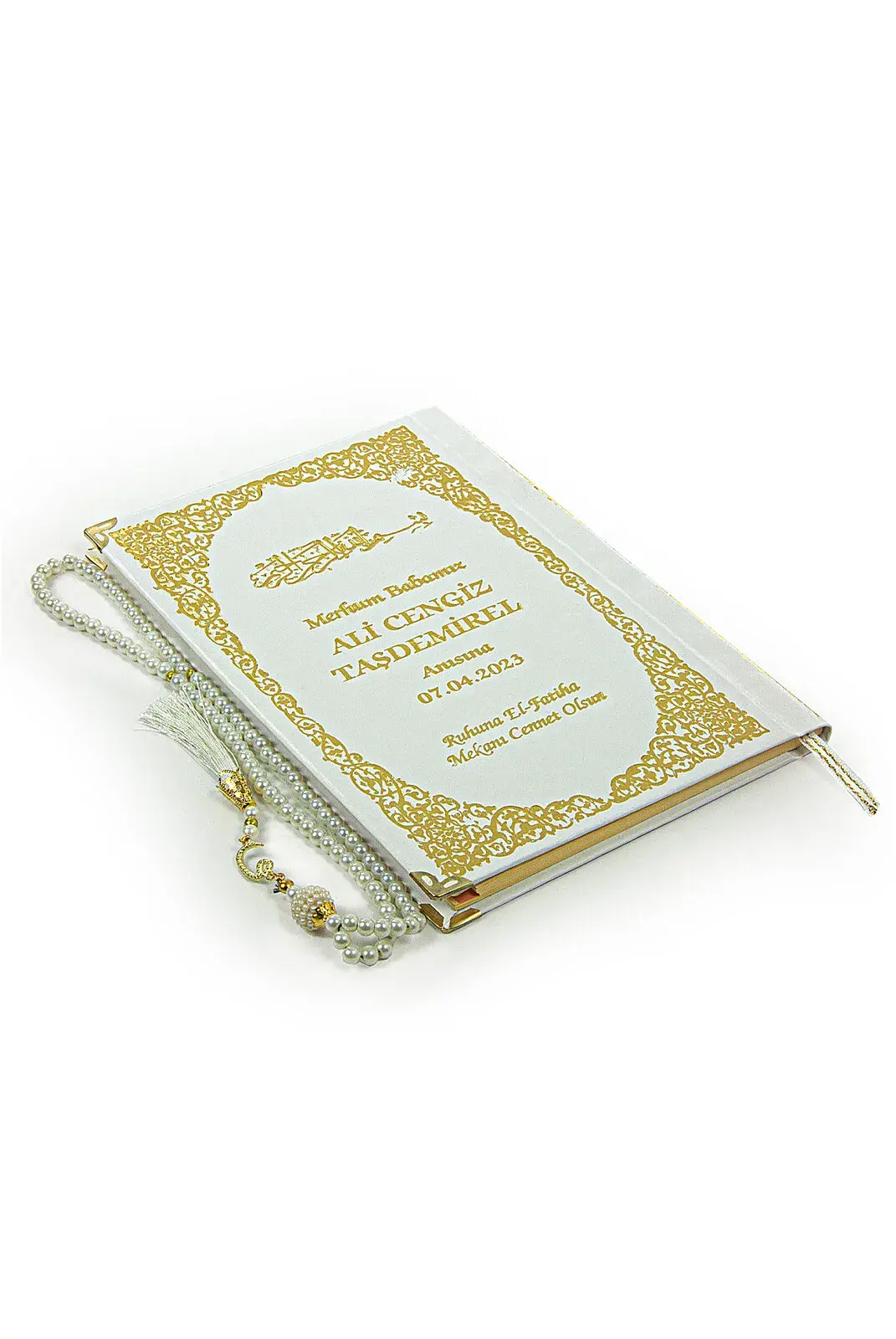 Tül Kaplamalı İsim Baskılı Ciltli Yasin Kitabı - Orta Boy - İnci Tesbihli - Beyaz