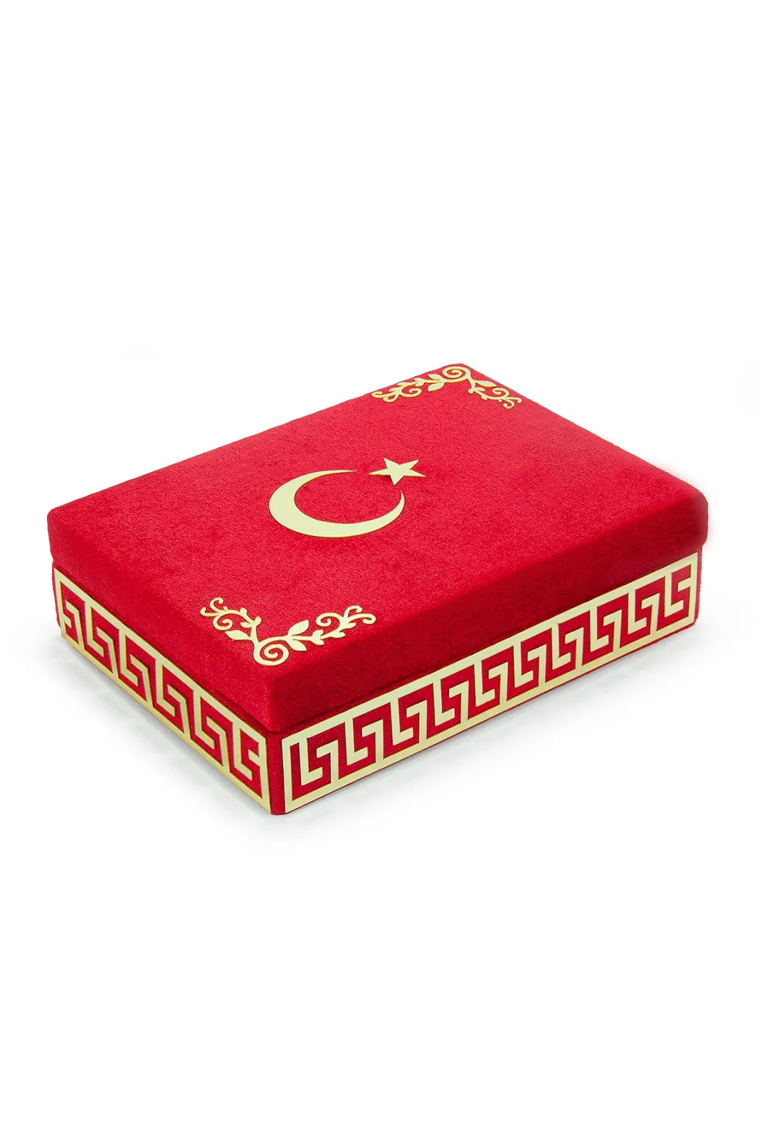 Özel kutusunda sunulan Türk bayraklı kadife hediyelik set, şık ve anlamlı bir armağandır. İçeriğinde Kuranı Kerim, seccade, tesbih ve Türk bayrağı yer alır. Kurumsal hediye ve özel günlerde milli ve manevi değeri yüksek bir seçenektir