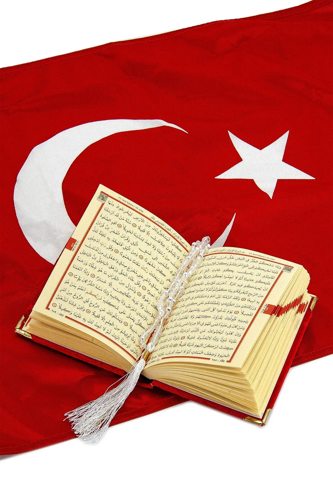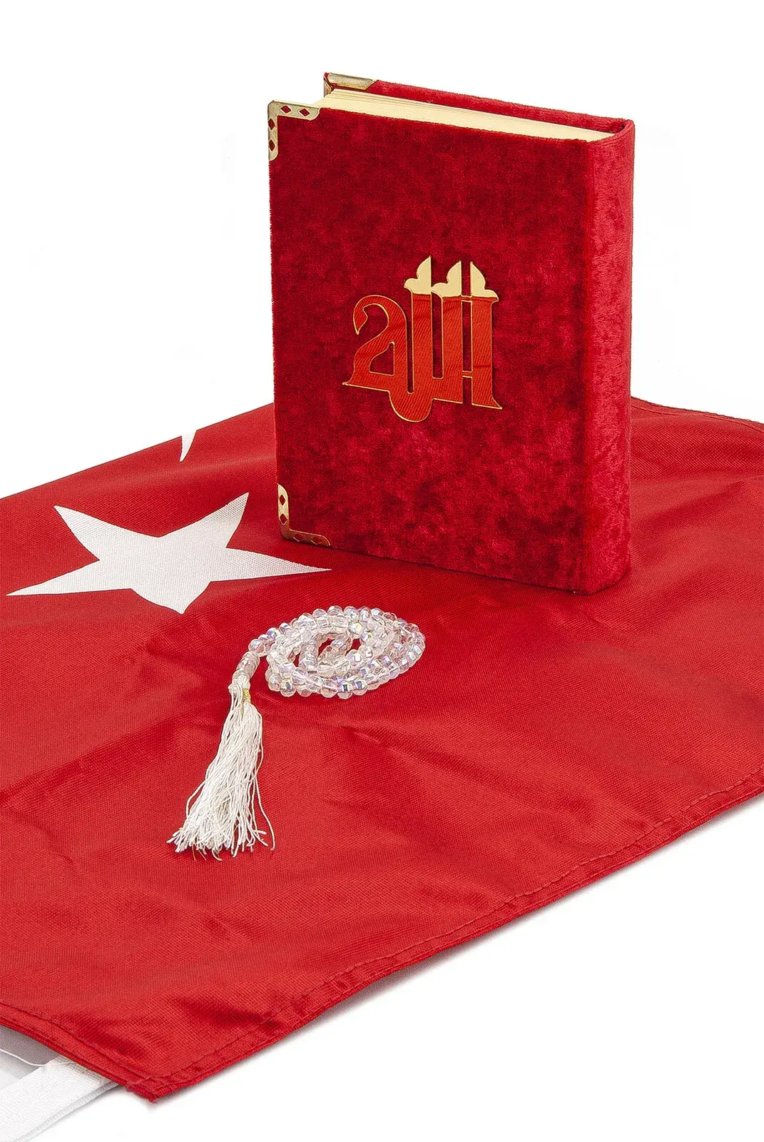 Turkish Flag Box Design Rosary Velvet Quran Set