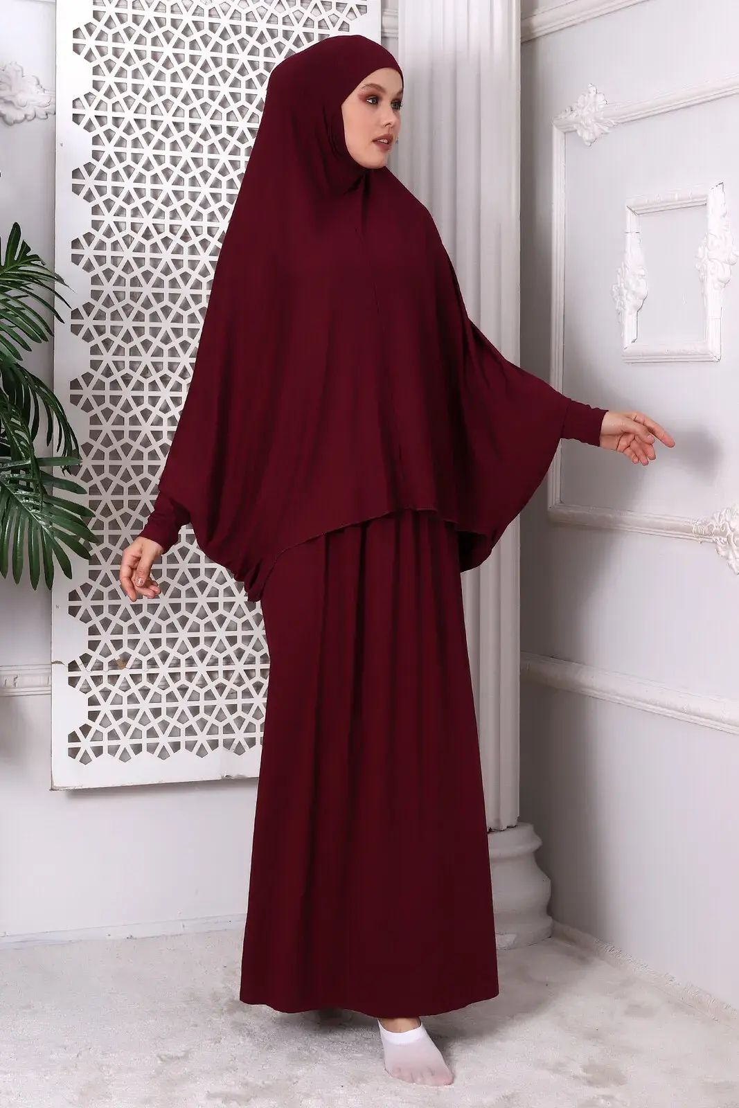Two Piece Practical Prayer Dress 8016 Claret Red