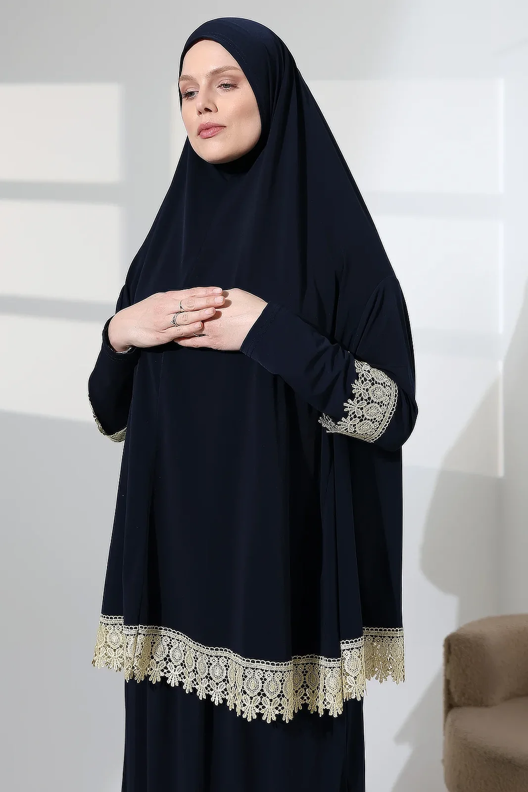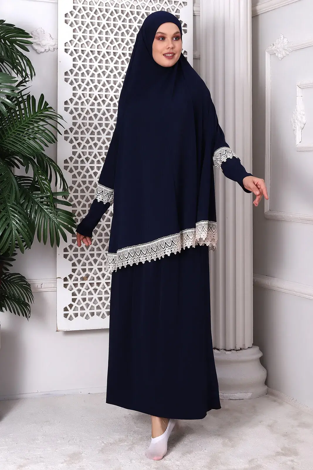 Two Piece Scalloped Practical Upper and Lower Prayer Dress 8018 Navy Blue